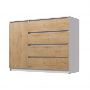 Комод «Вега» — стильное и практичное решение для организации пространства в вашем доме. Модель сочетает современный дизайн с продуманной функциональностью: вместительные ящики и отделение за дверцей позволяют аккуратно хранить одежду, постельное бельё или бытовые мелочи.