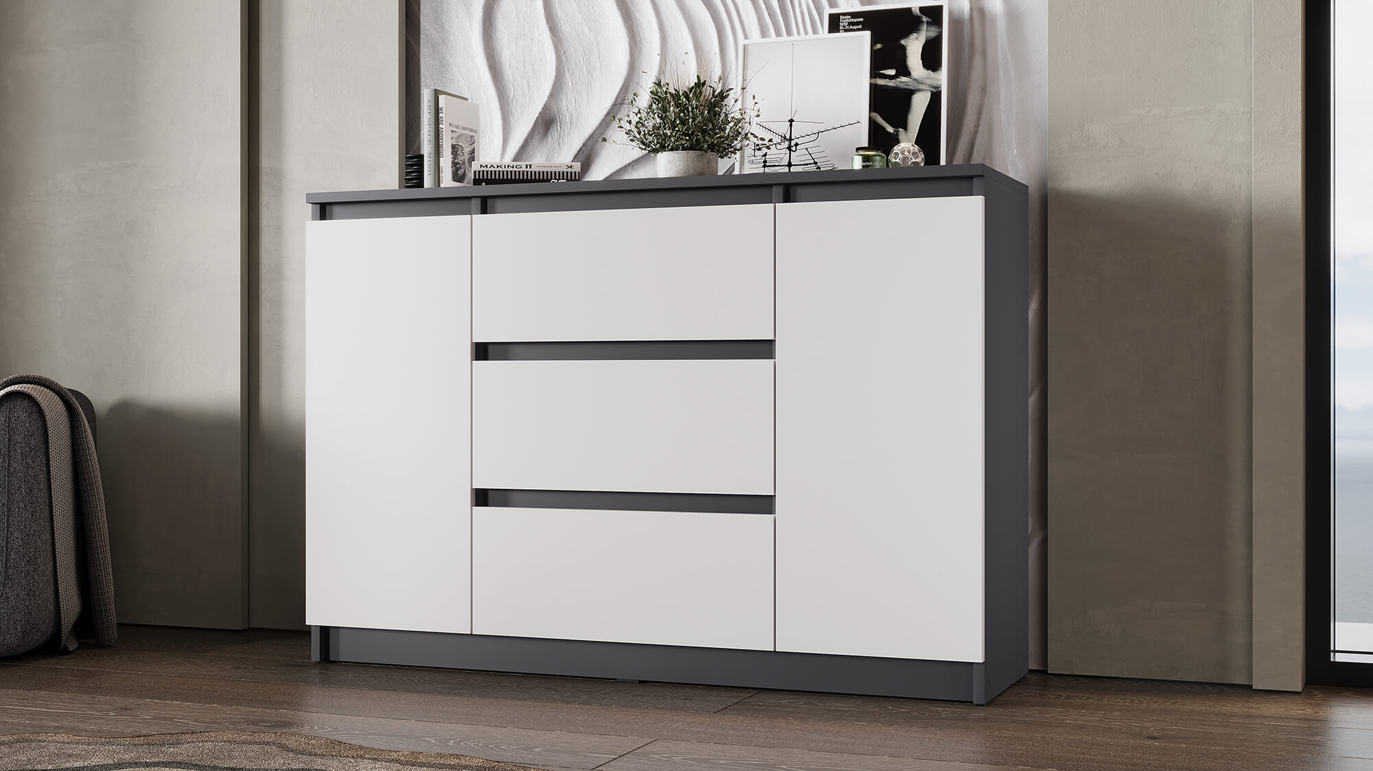 Комод ВЕГА 2Д-3Я Графит/Белый гладкий