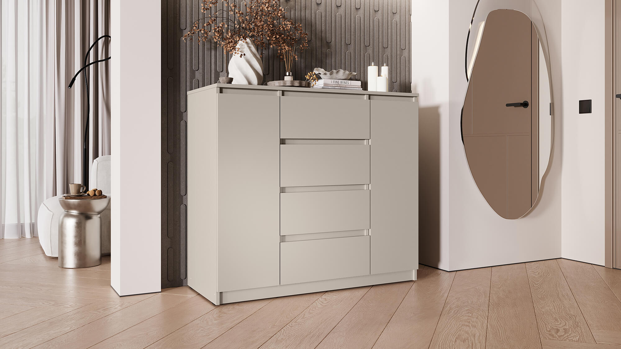 Благодаря лаконичному внешнему виду комод органично впишется в интерьер спальни, гостиной или прихожей. Прочные материалы и надёжная фурнитура гарантируют долгий срок службы, а чёткие линии и стильная цветовая гамма подчеркнут эстетику вашего дома.
