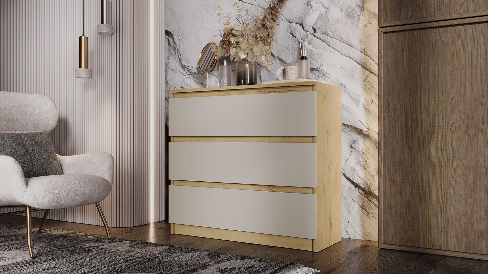 Комод ВЕГА 3Я Дуб Вотан/Сатин