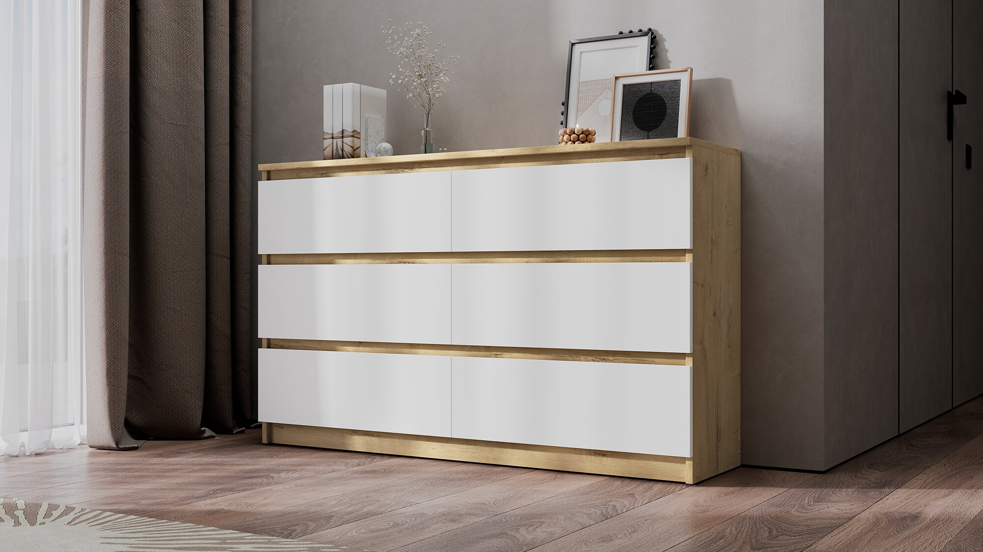 Комод ВЕГА 6Я Дуб Вотан/Белый гладкий