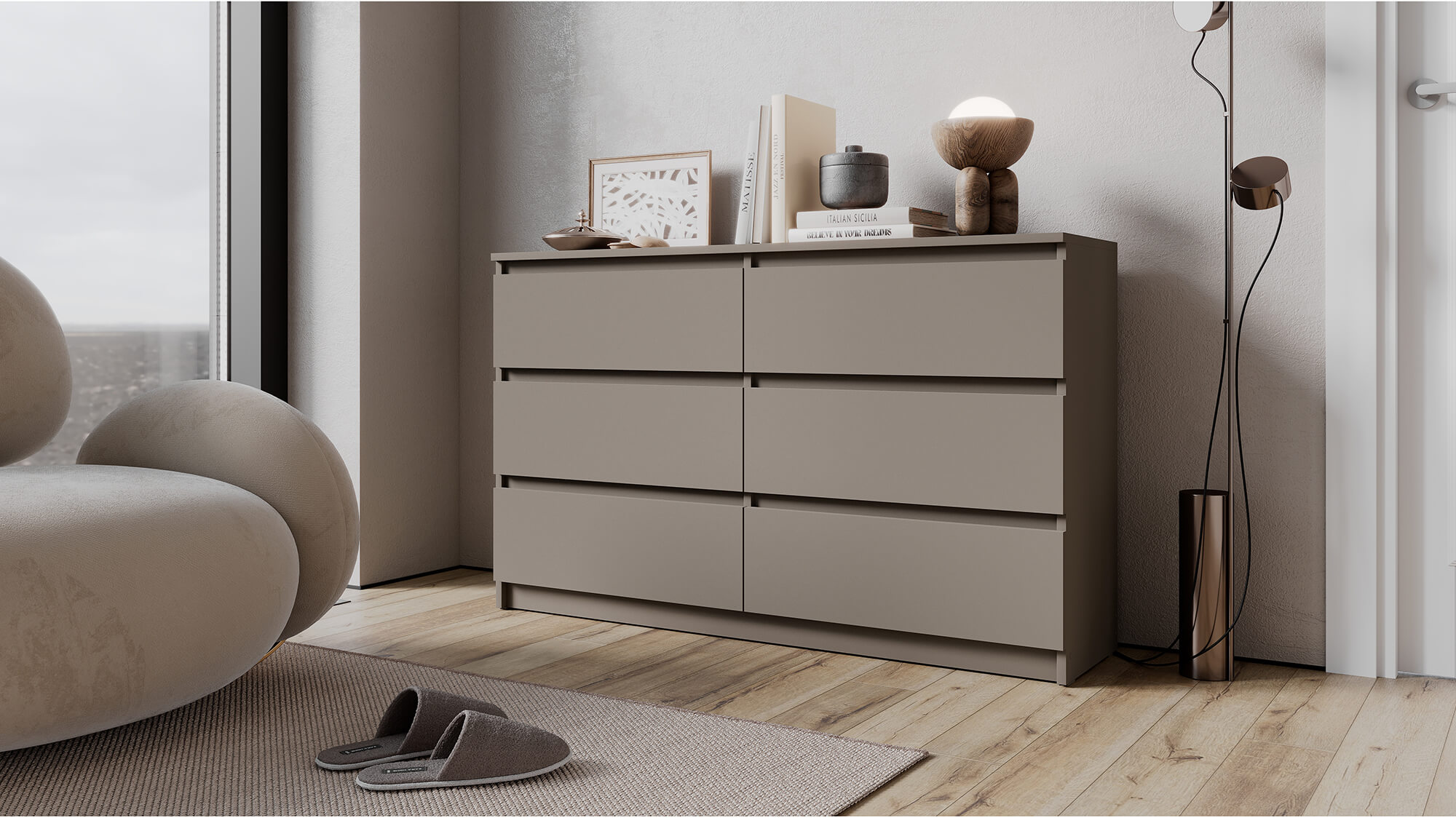 Комод «Вега» — стильное и практичное решение для организации пространства в вашем доме. Модель сочетает современный дизайн с продуманной функциональностью: вместительные ящики позволяют аккуратно хранить одежду, постельное бельё или бытовые мелочи.