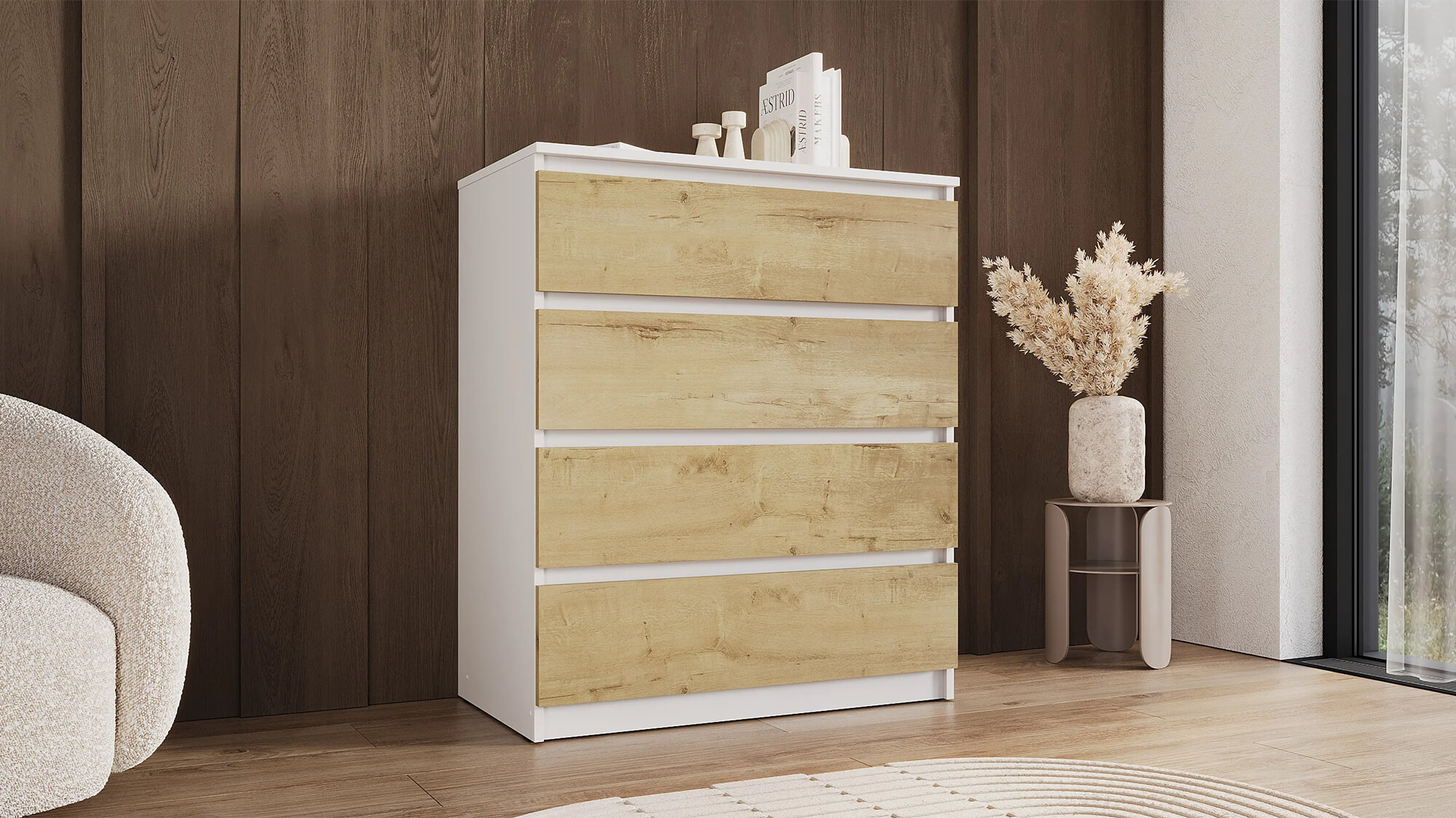 Комод ВЕГА Люкс 4Я Белый гладкий/Дуб Вотан