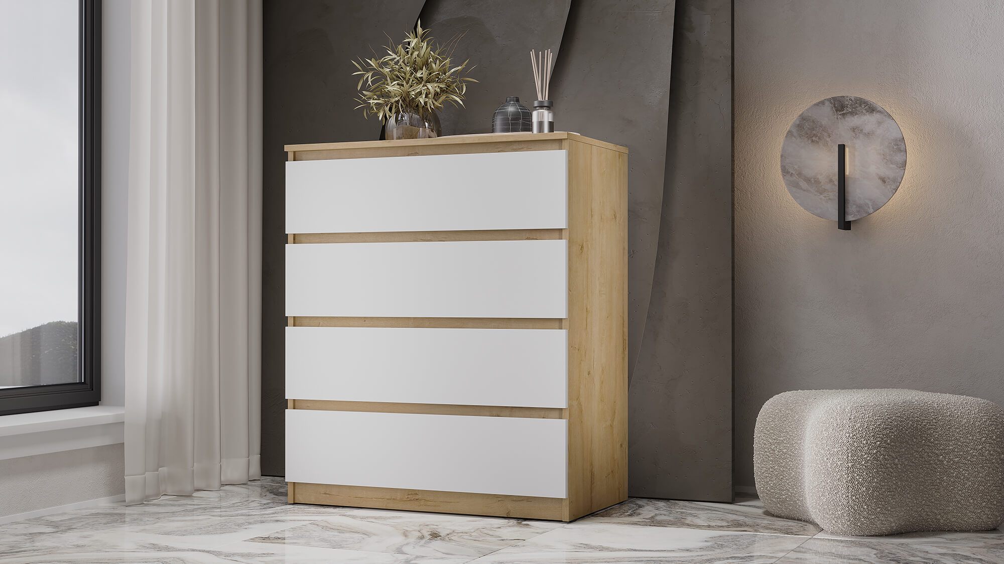 Комод ВЕГА Люкс 4Я Дуб Вотан/Белый гладкий