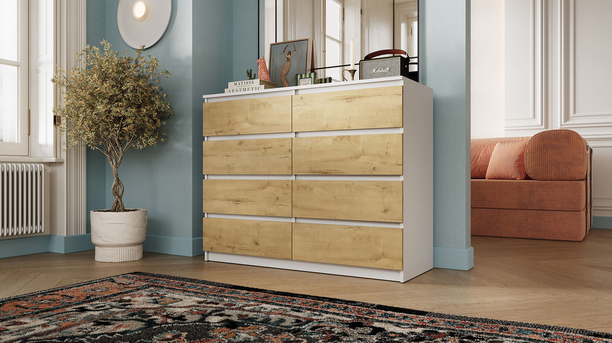 Комод ВЕГА Люкс 8Я Белый гладкий/Дуб Вотан