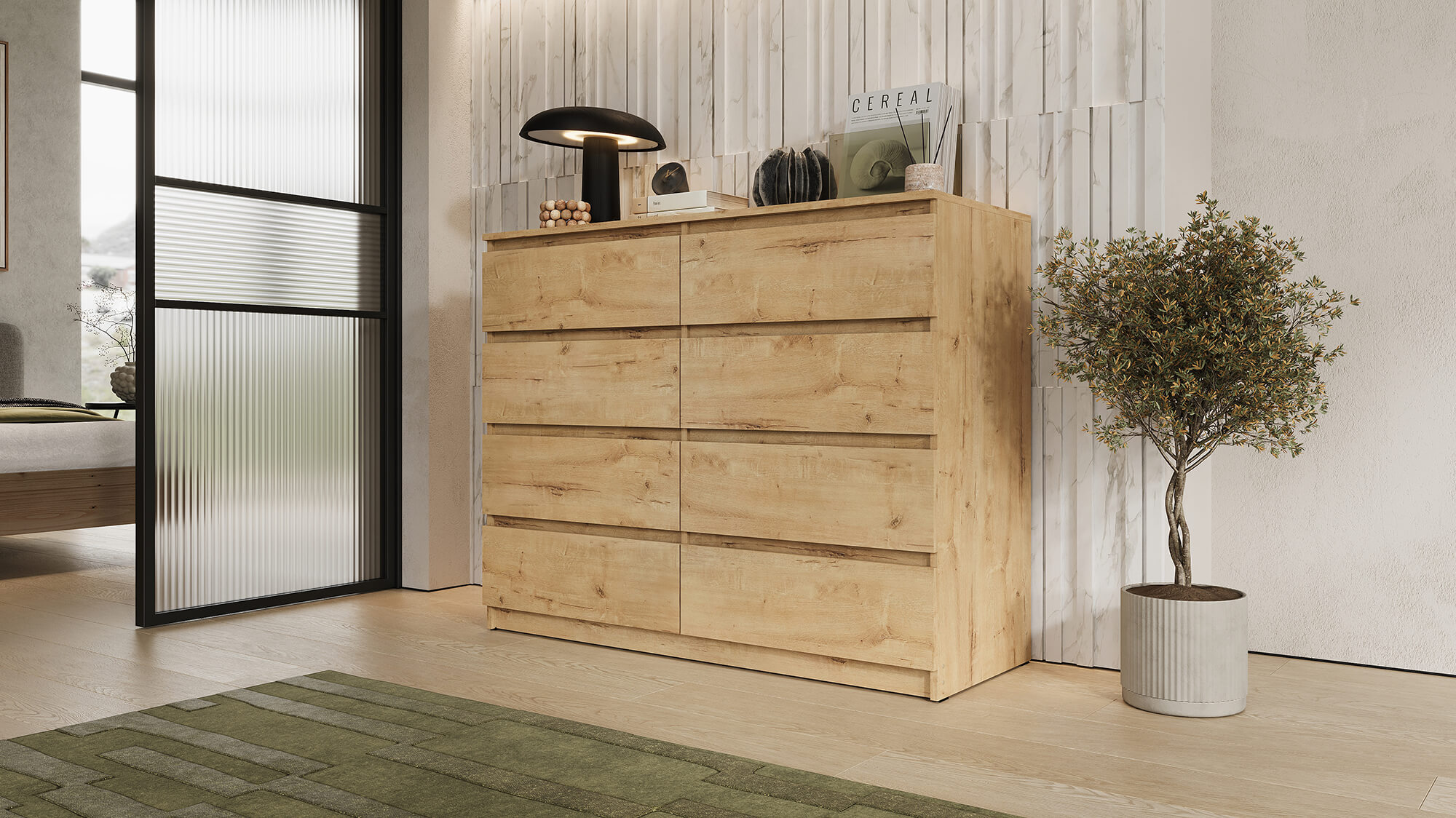 Благодаря лаконичному внешнему виду комод органично впишется в интерьер спальни, гостиной или прихожей. Прочные материалы и надёжная фурнитура гарантируют долгий срок службы, а чёткие линии и стильная цветовая гамма подчеркнут эстетику вашего дома.