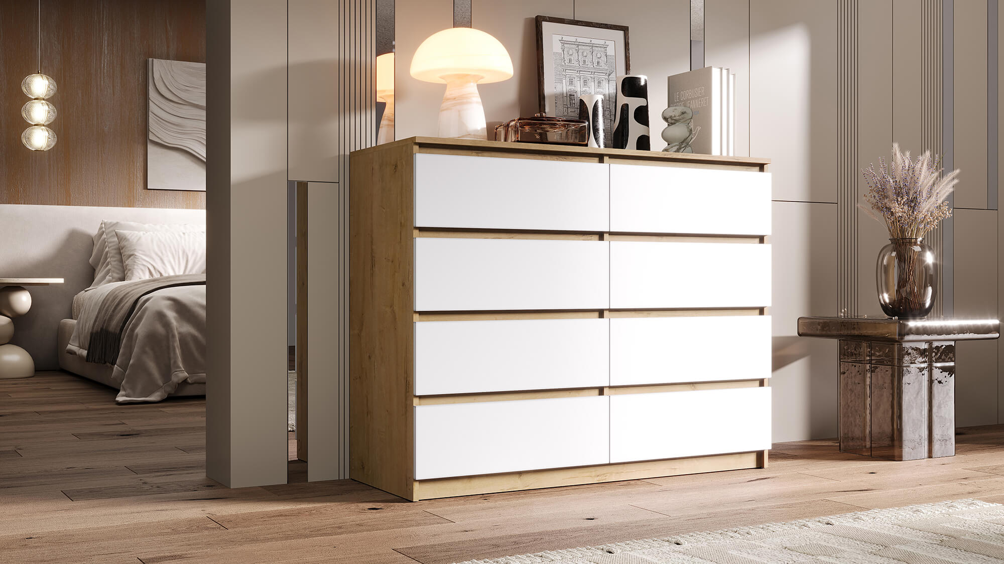 Комод ВЕГА Люкс 8Я Белый гладкий/Дуб Вотан
