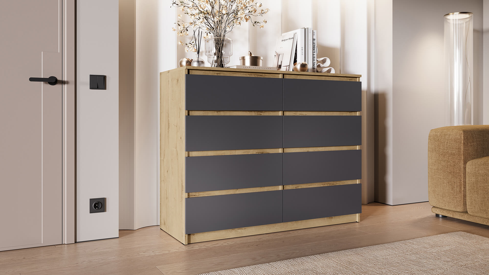Комод ВЕГА Люкс 8Я Дуб Вотан/Графит