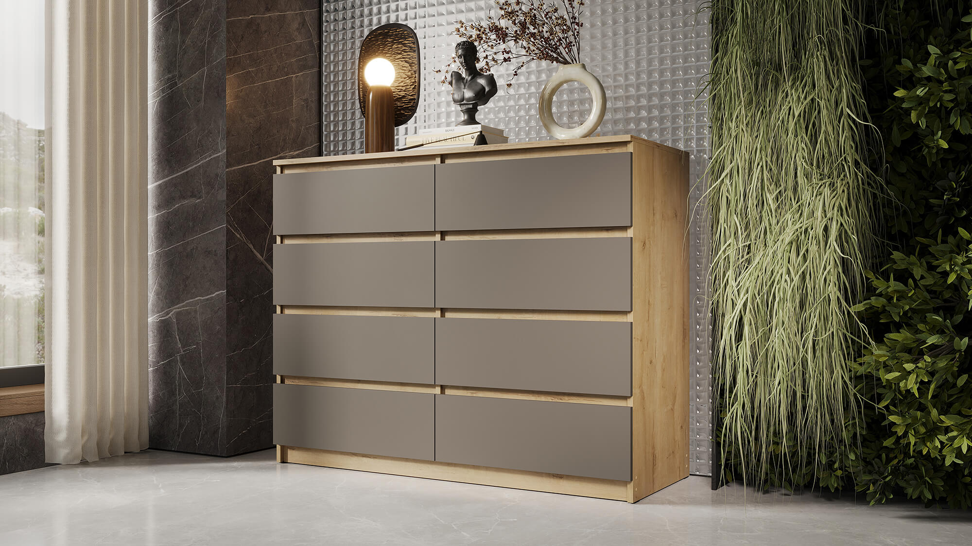 Комод ВЕГА Люкс 8Я Дуб Вотан/Мокко