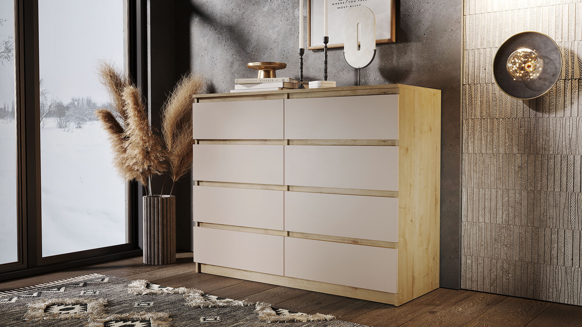Благодаря лаконичному внешнему виду комод органично впишется в интерьер спальни, гостиной или прихожей. Прочные материалы и надёжная фурнитура гарантируют долгий срок службы, а чёткие линии и стильная цветовая гамма подчеркнут эстетику вашего дома.