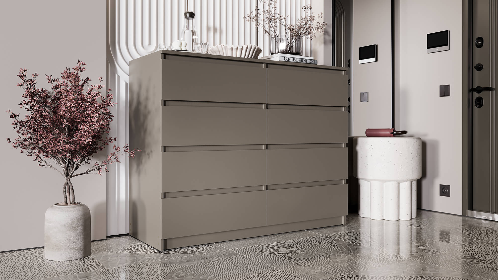 Благодаря лаконичному внешнему виду комод органично впишется в интерьер спальни, гостиной или прихожей. Прочные материалы и надёжная фурнитура гарантируют долгий срок службы, а чёткие линии и стильная цветовая гамма подчеркнут эстетику вашего дома.