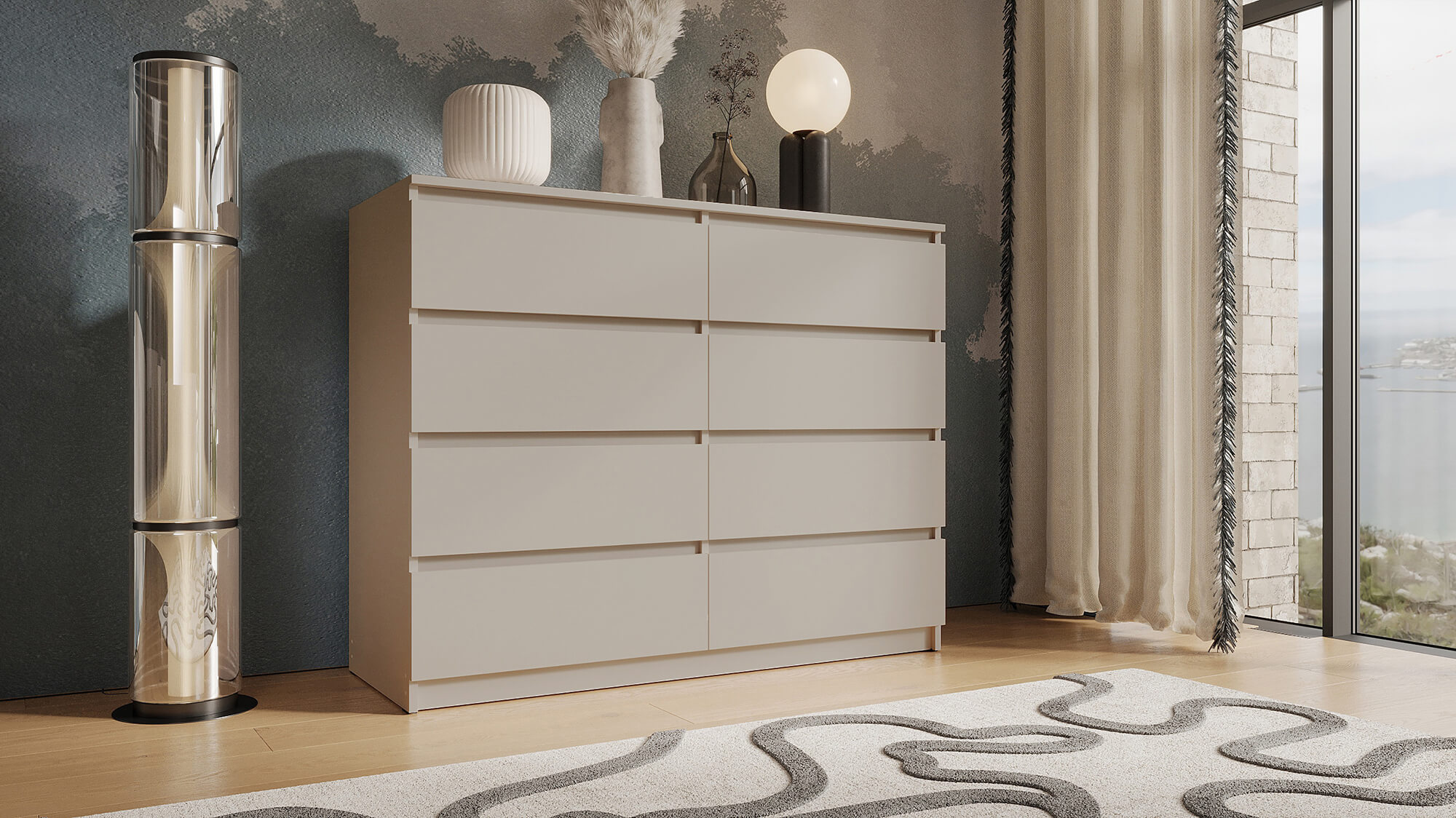 Комод «Вега» — стильное и практичное решение для организации пространства в вашем доме. Модель сочетает современный дизайн с продуманной функциональностью: вместительные ящики позволяют аккуратно хранить одежду, постельное бельё или бытовые мелочи.