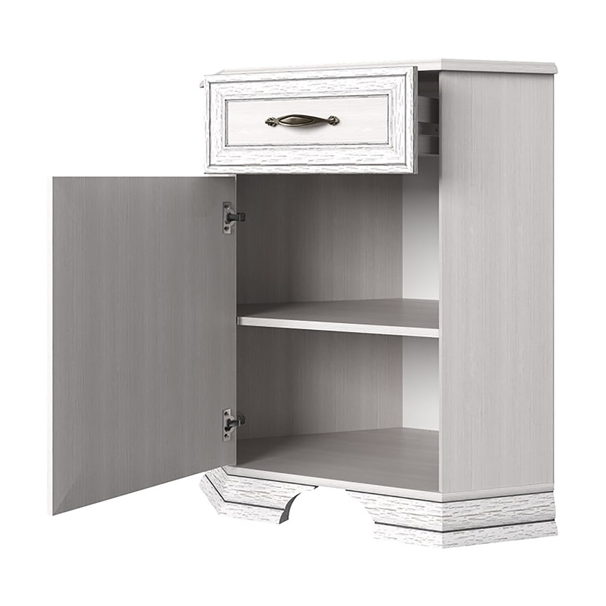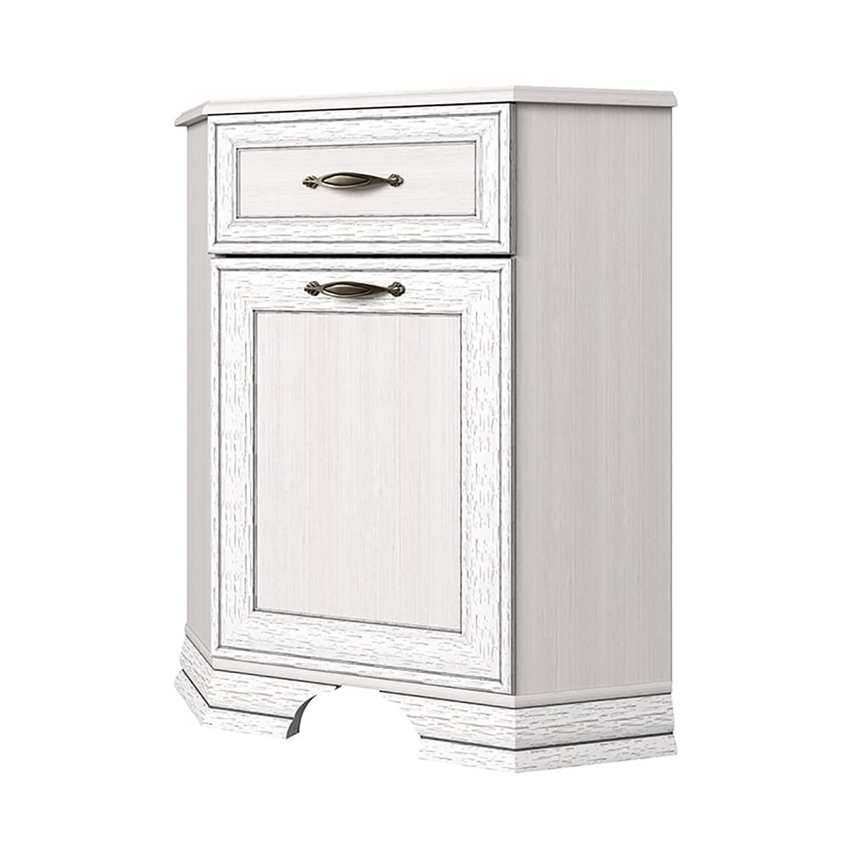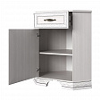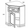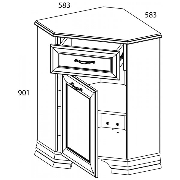 Тумба Тиффани 1D1SU. Несомненно, поможет в организации интерьера спальни, гостиной, столовой и кабинета. Лучше устанавливать в сочетание с таким элементом коллекции, как Шкаф с витриной 1VU, для завершения композиции. Тумба 1D1SU – угловая (U). Имеет одно отделение с полкой (полка делит отделение на две вместительные ниши) за глухой дверью (1D) для хранения предметов посуды, одежды, белья; и один выдвижной ящик (1S).