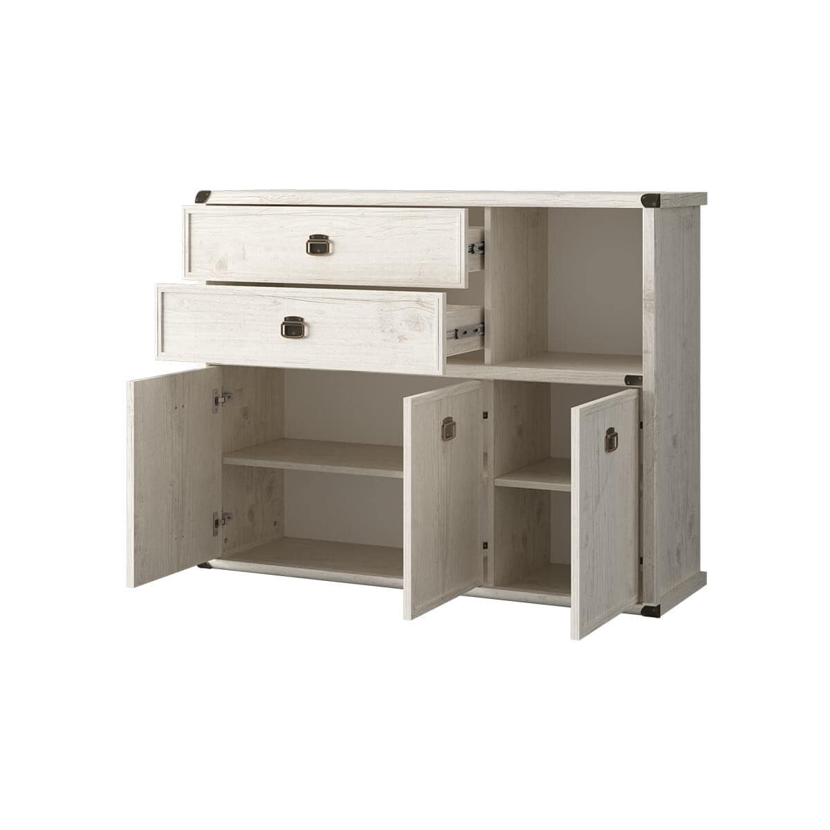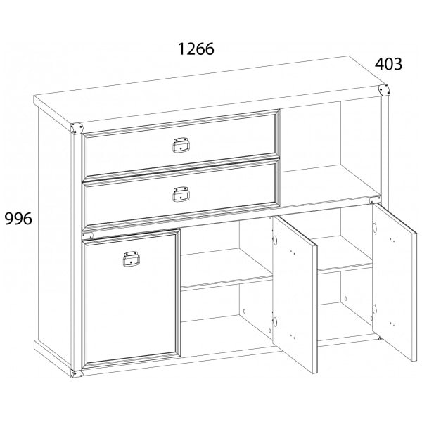 Тумба 3D2SN MAGELLAN – функциональное и удобное украшение интерьера гостиной, молодёжной комнаты, прихожей и спальни. Тумбу можно устанавливать и как самостоятельный предмет мебели, так и в сочетание с другими модулями коллекции Магеллан. Тумба 3D2SN имеет прямую конструкцию. Конструкция элемента представляет собой три отделения с полками из ЛДСП за глухими дверями (3D), два вместительных выдвижных ящика (2S), одна открытая ниша (N). Двери распашные, крепятся на петли к боковому корпусу и внутренней перегородке.