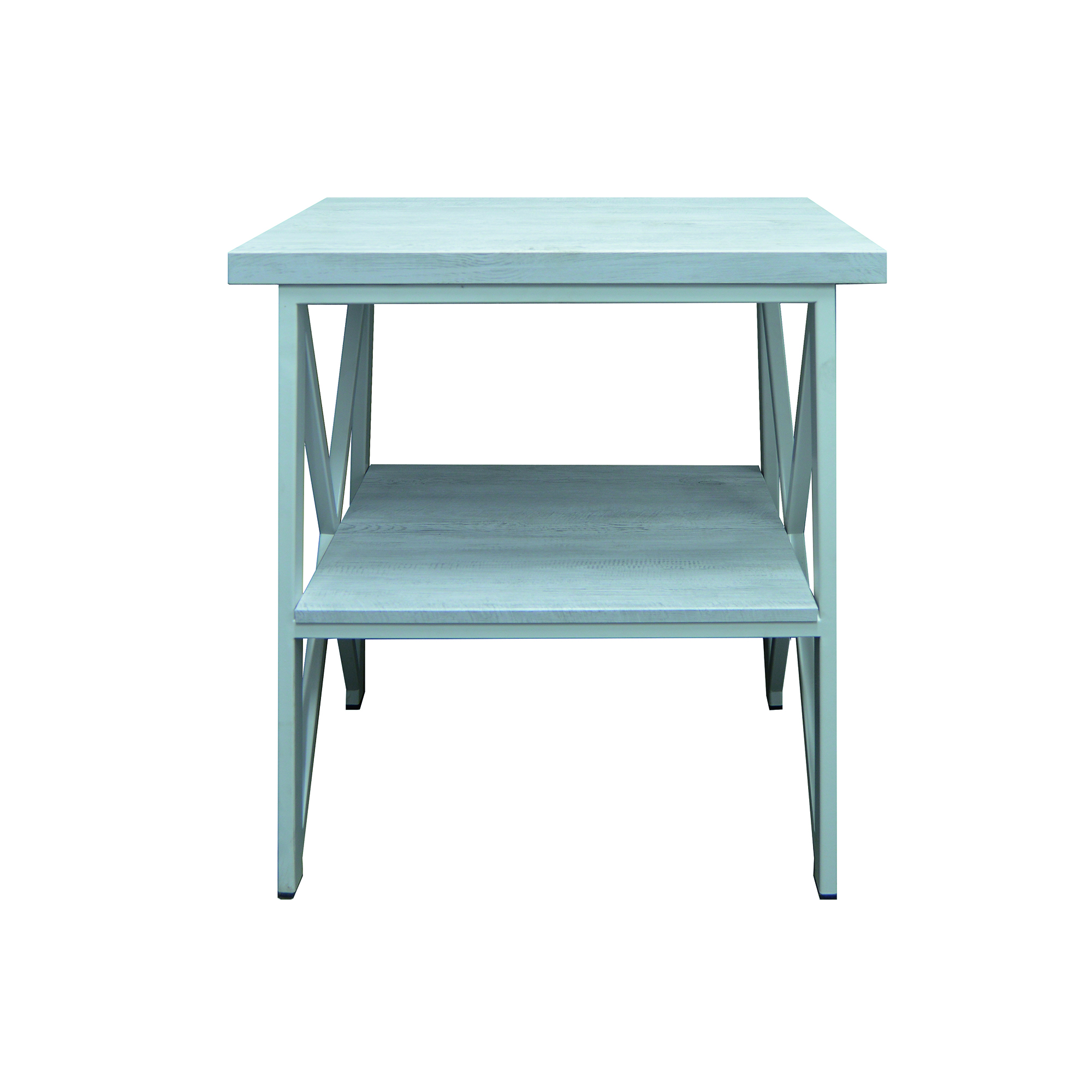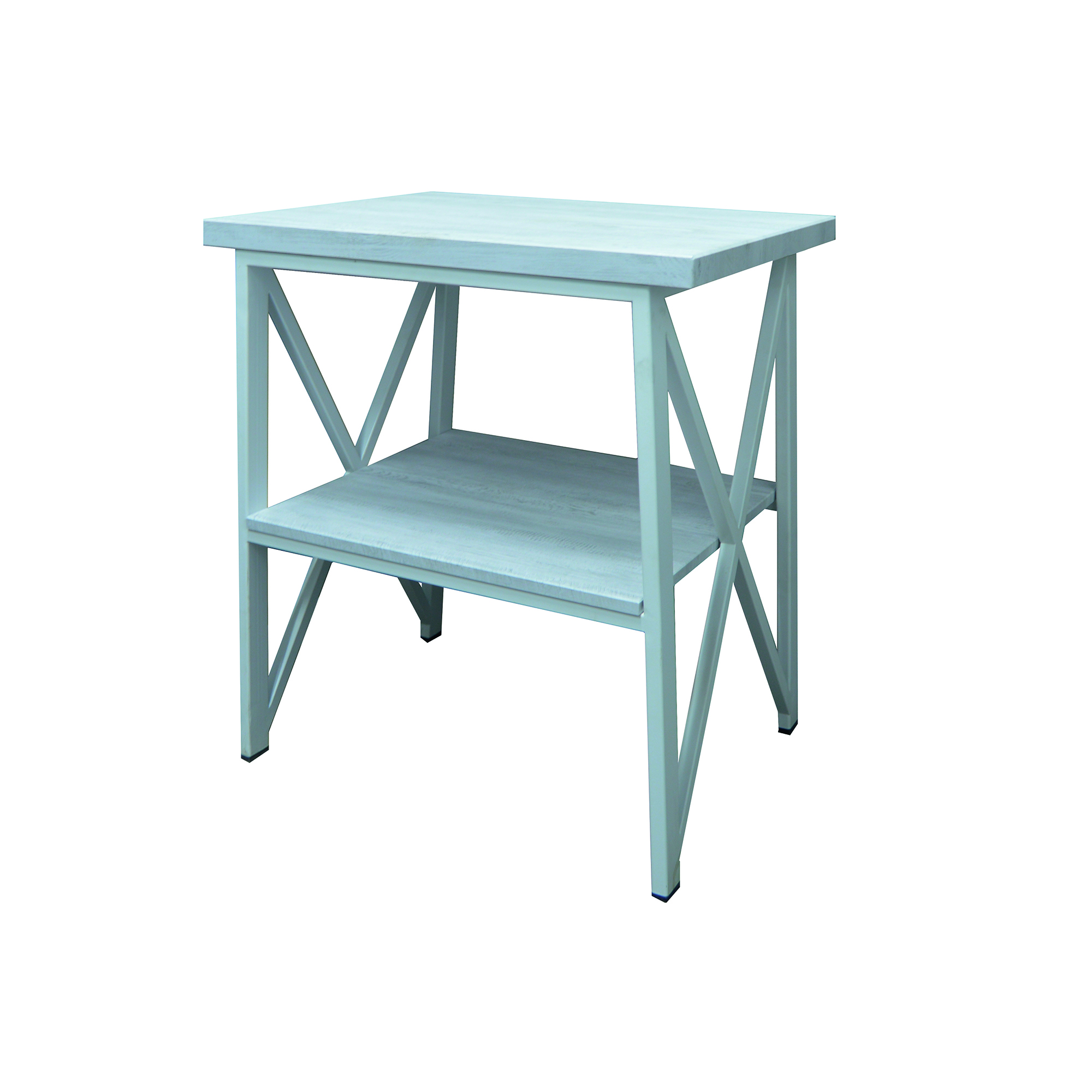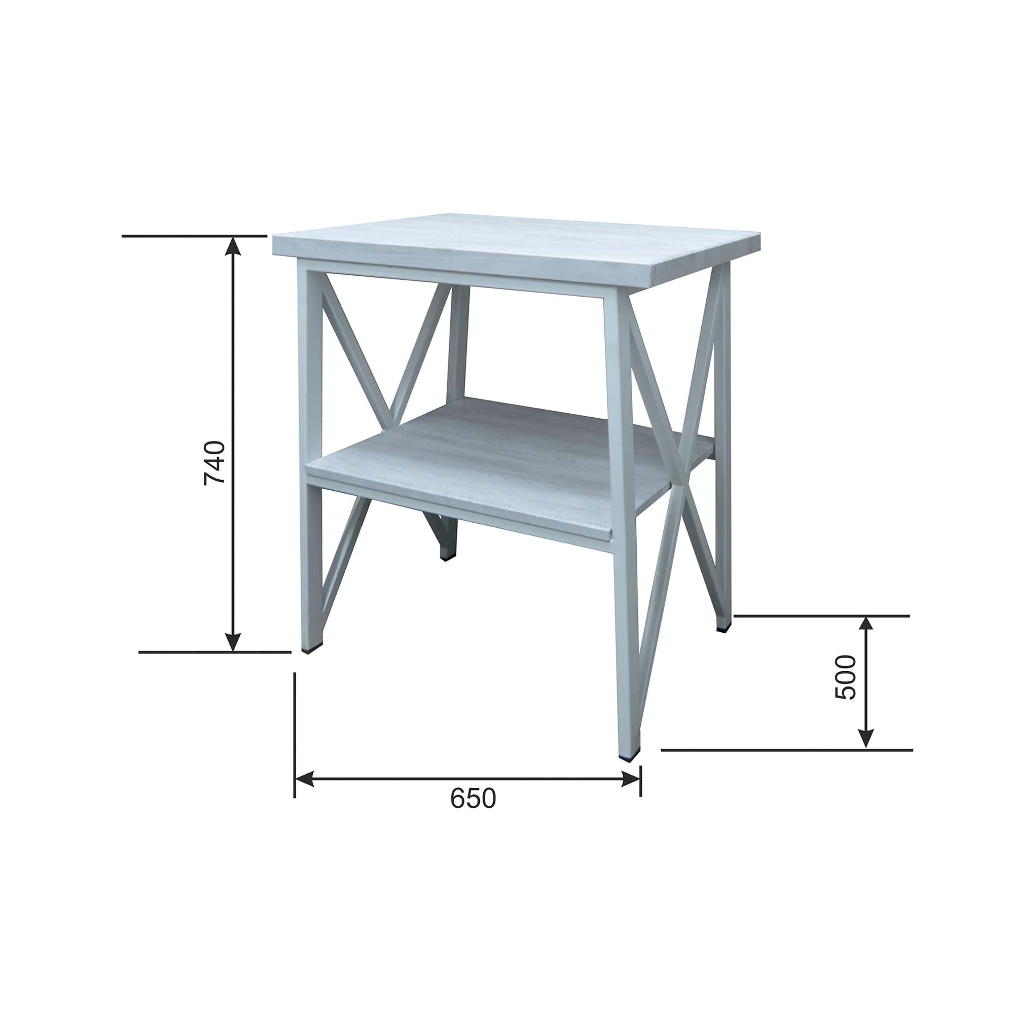 Каркас из трубы 20х40 мм и 20х20 мм, порошковое покрытие белый муар, столешница МДФ 32 мм, полка МДФ 16 мм, пленка ПВХ дуб белый.