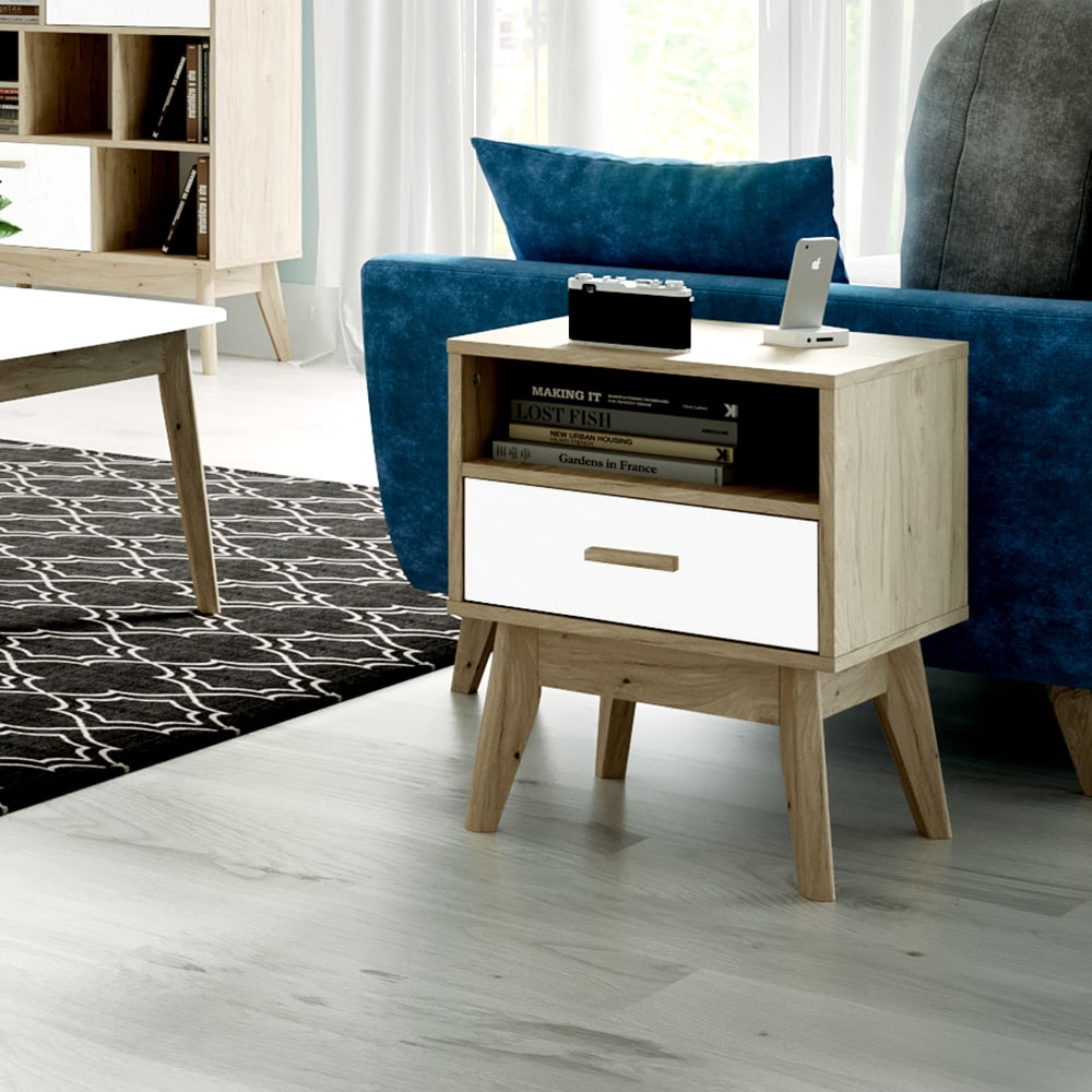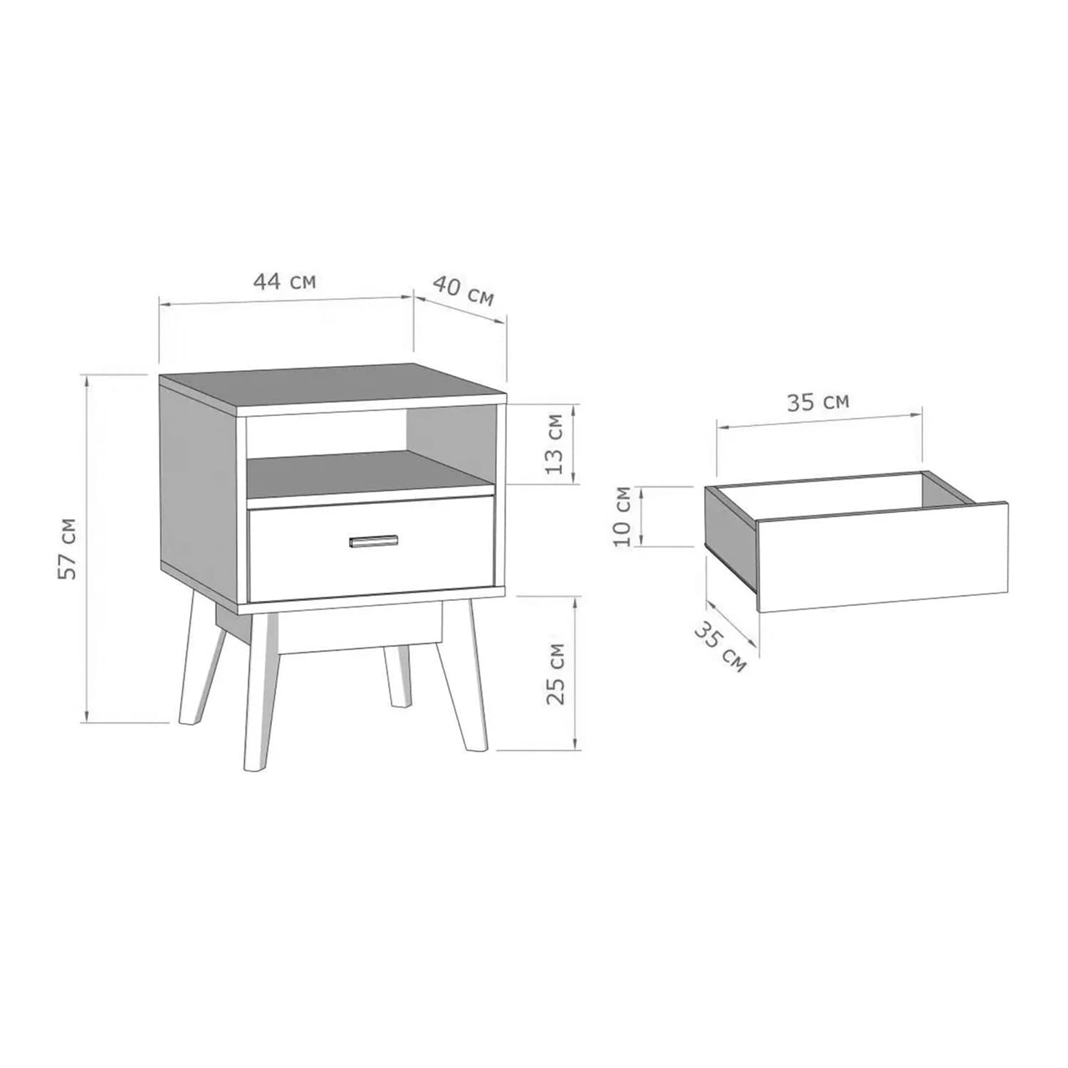 Открытое отделение тумбы позволяет разместить книги, журналы и другие предметы на виду. Выдвижной ящик идеально подходит для хранения мелочей, таких как пульт от телевизора, наушники и зарядные устройства.