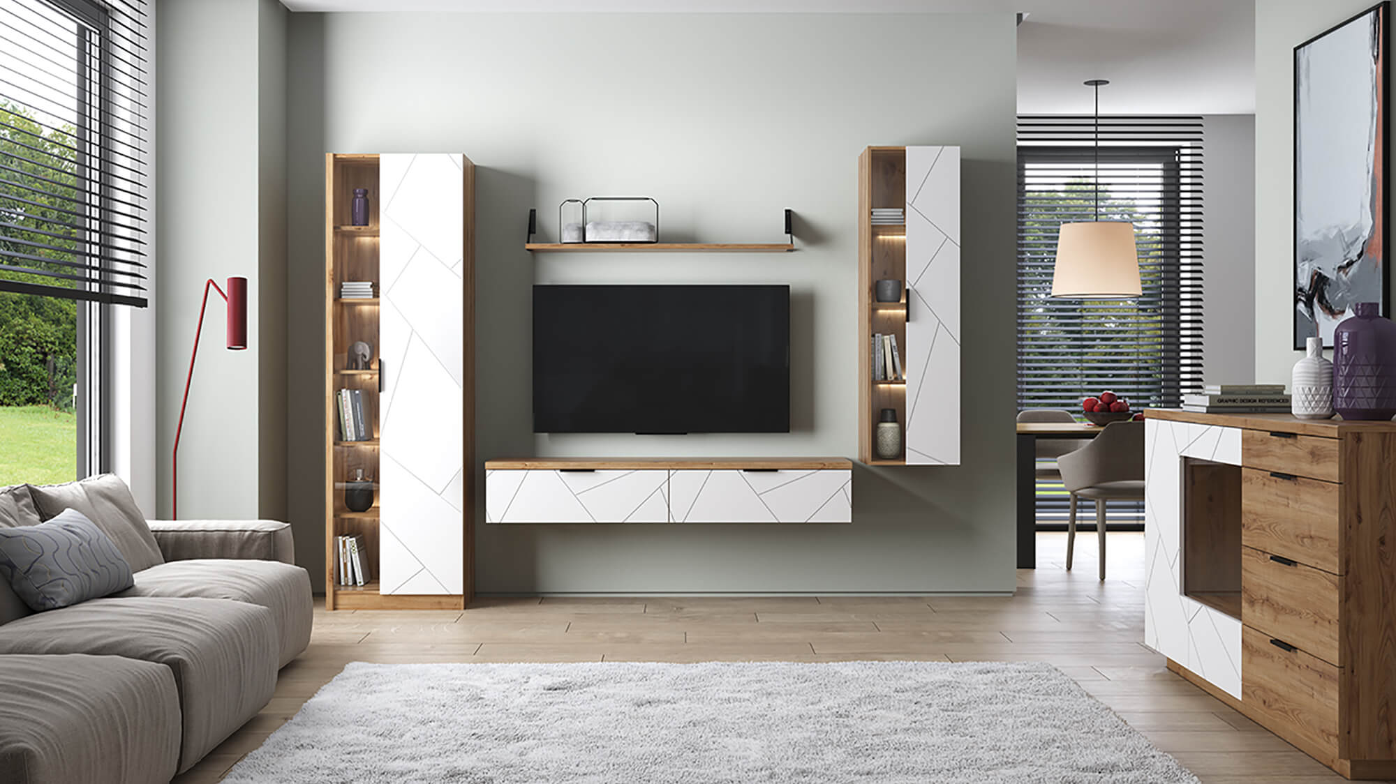 KAYLAS - современная коллекция, выраженная индивидуальностью. Представлены элементы для оформления  гостиной группы. Сочетание древесной текстуры и ЭКО ДЖЕЛАТО поддерживают акцент и динамику в интерьере.