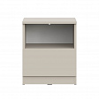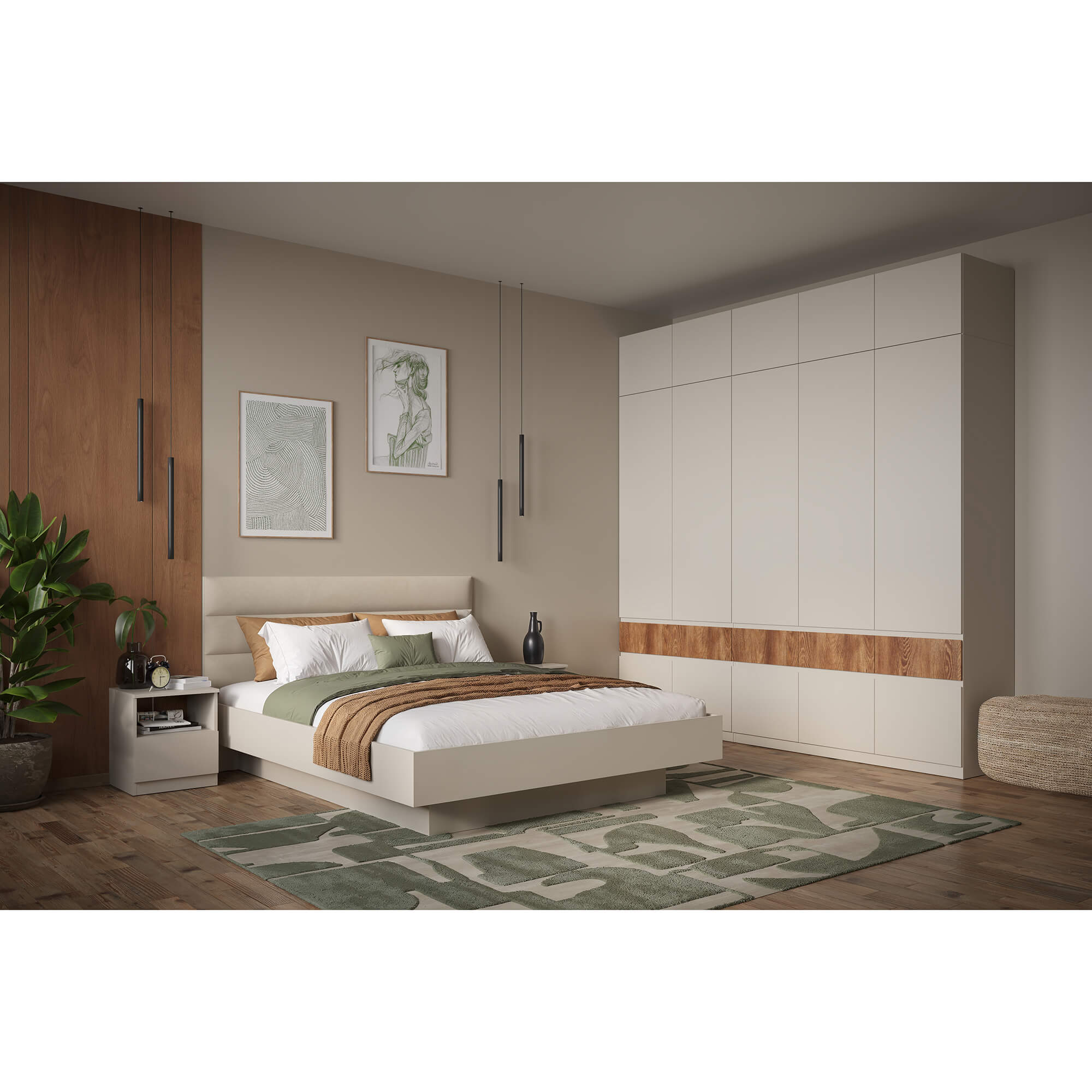 Элегантный дизайн: использование вставки на фасаде в цвете текстурного темного дерева каштан придает мебели уникальность, добавляя контраст.