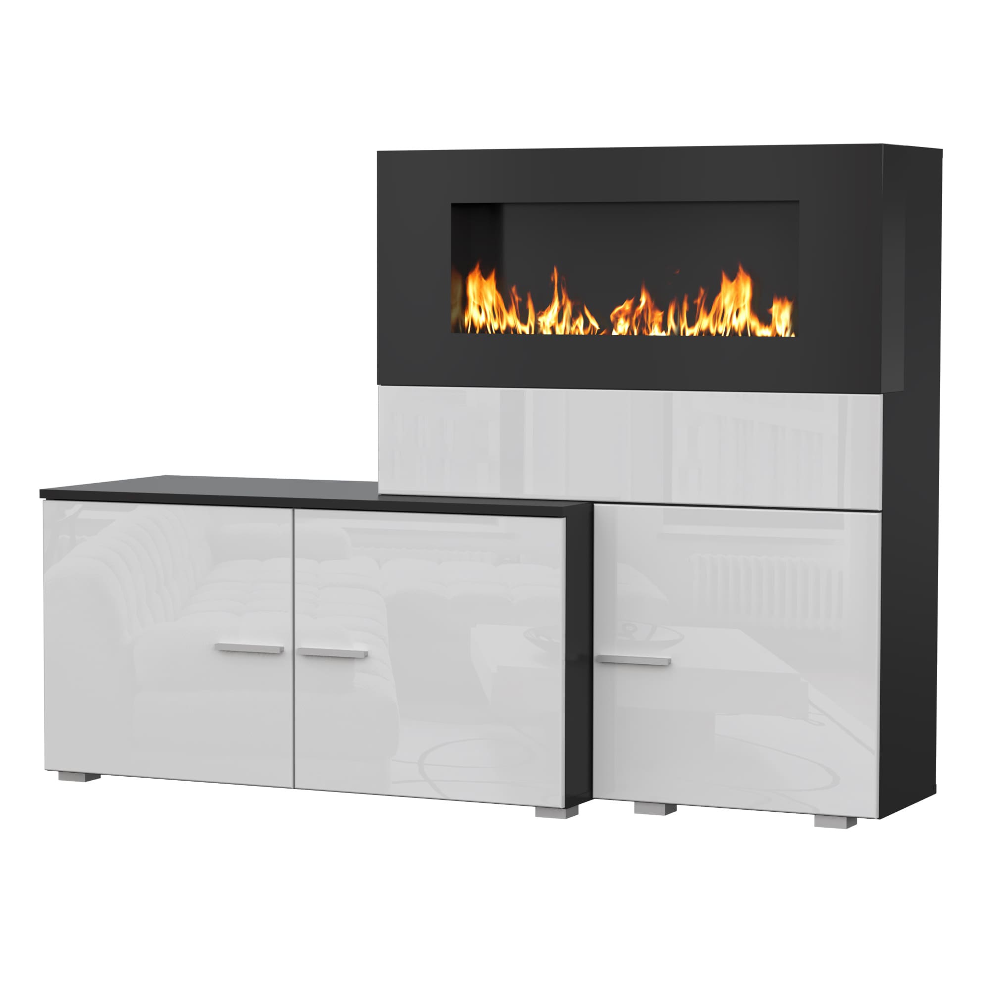 Тумба НК Ralf с биокамином Черный/Белый глянец