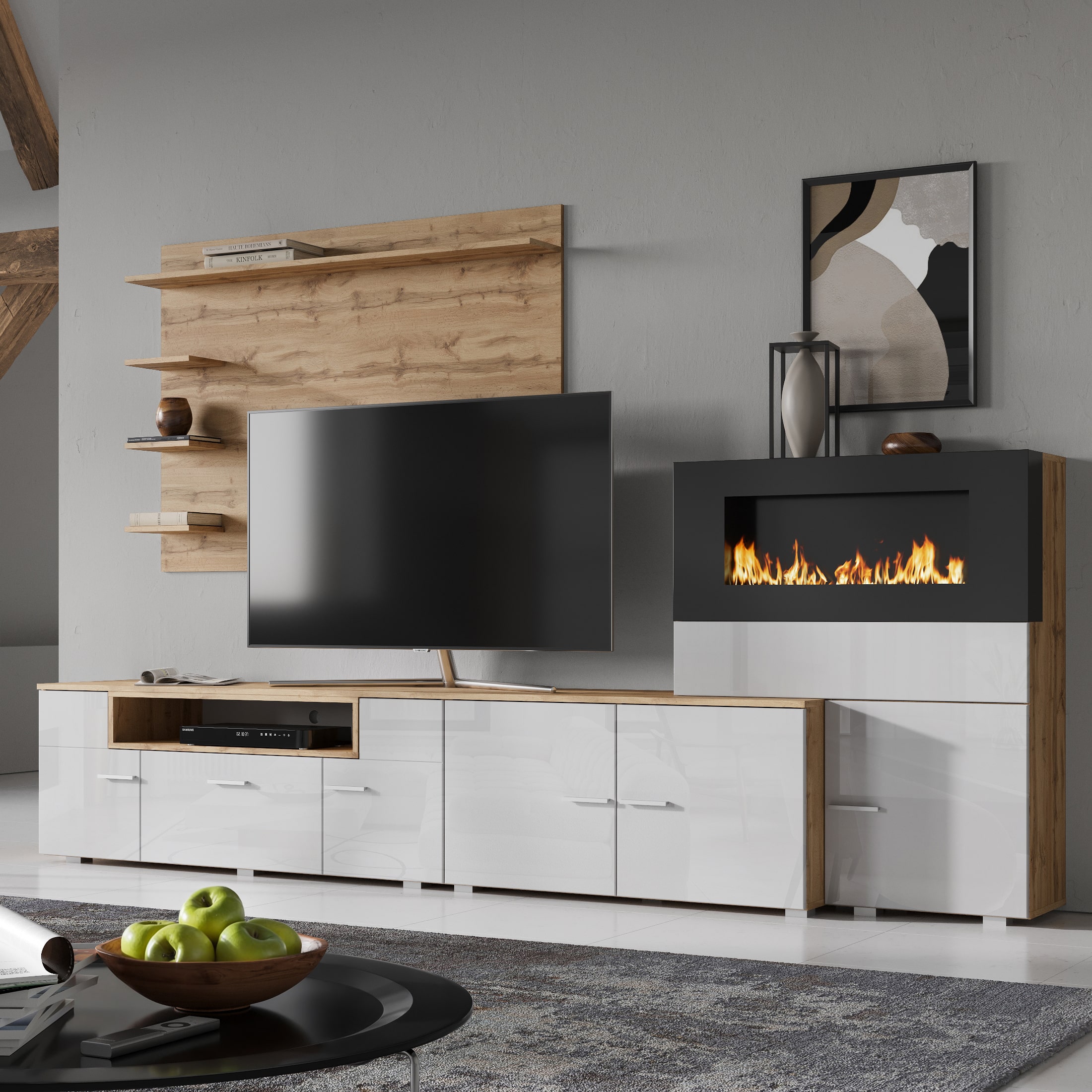 Тумба НК Ralf с биокамином Дуб вотан/Белый глянец