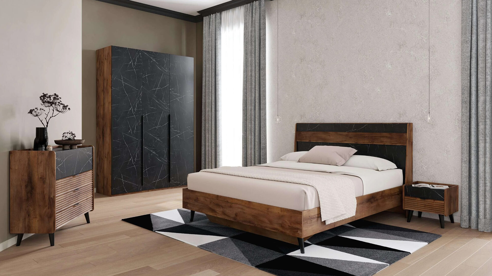 Серия мебели для спальни “Браун” в цвете Таксония/Мрамор неро маркина представляет собой элегантное и стильное решение для создания уютной атмосферы в вашей спальне. Мрамор придает мебели изысканный и роскошный вид, а Таксония добавляет теплые нотки и создает гармоничное сочетание с черным цветом.
