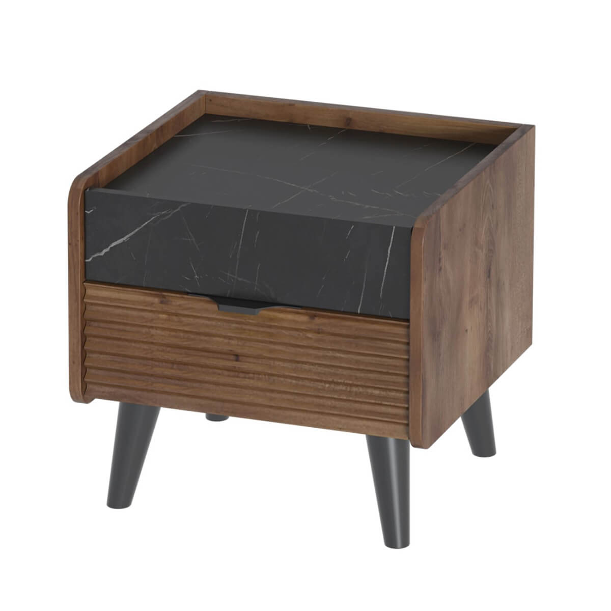 Прикроватная тумба "Браун" имеет выдвижной ящик, для хранения мелких предметов, таких как пульт от телевизора, наушники, зарядные устройства. Открытое отделение тумбы позволяет хранить книги, журналы и другие предметы на видном месте.