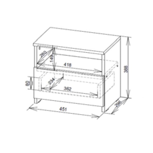 Тумба прикроватная с одим выдвижным ящиком на шариковых направлящих, над ящиком открытая ниша.