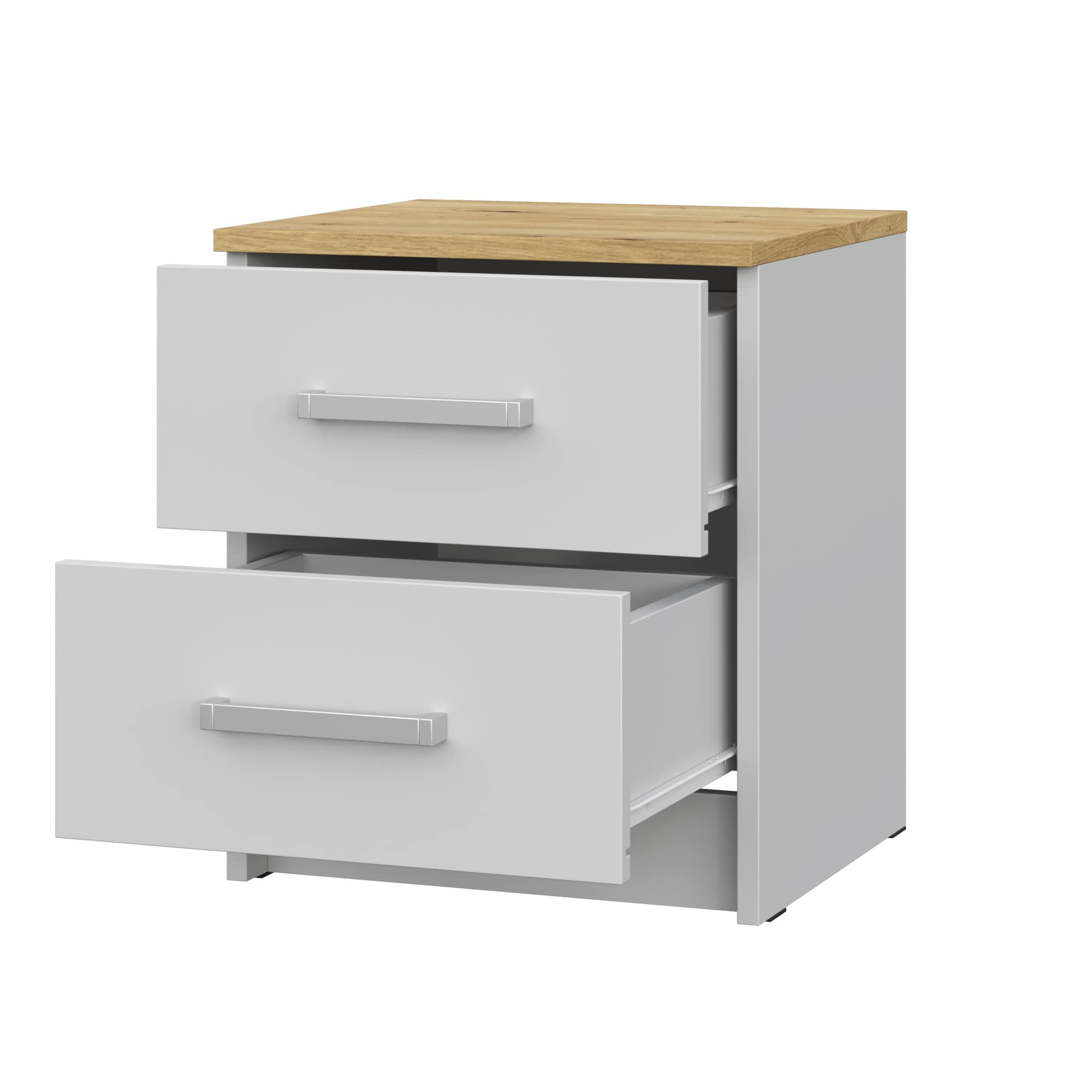 Тумба имеет два ящика, что позволяет хранить различные предметы, такие как книги, журналы или аксессуары.