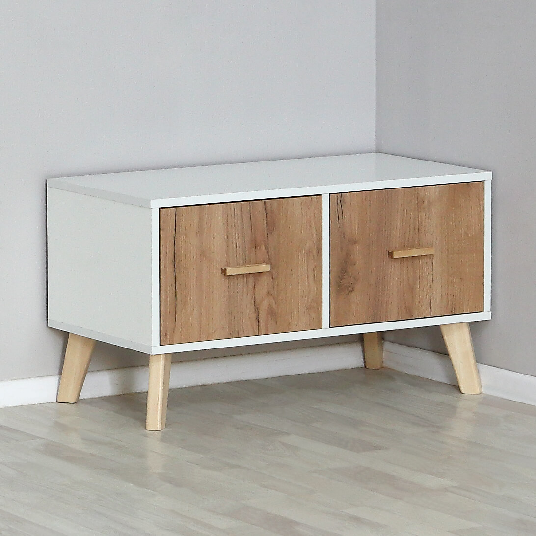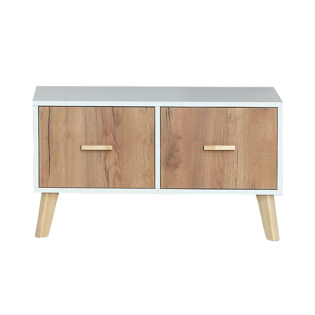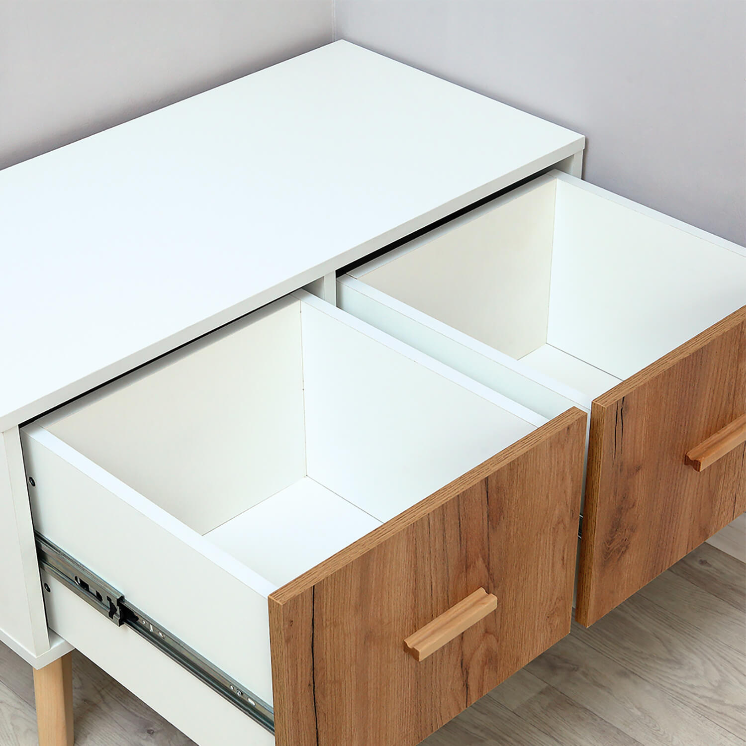 Тумба с двумя ящиками Скандик Белый жемчуг/Дуб Крафт золотой