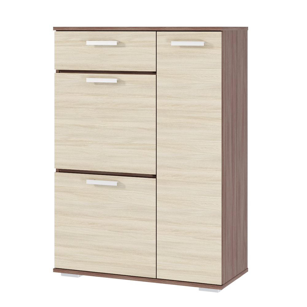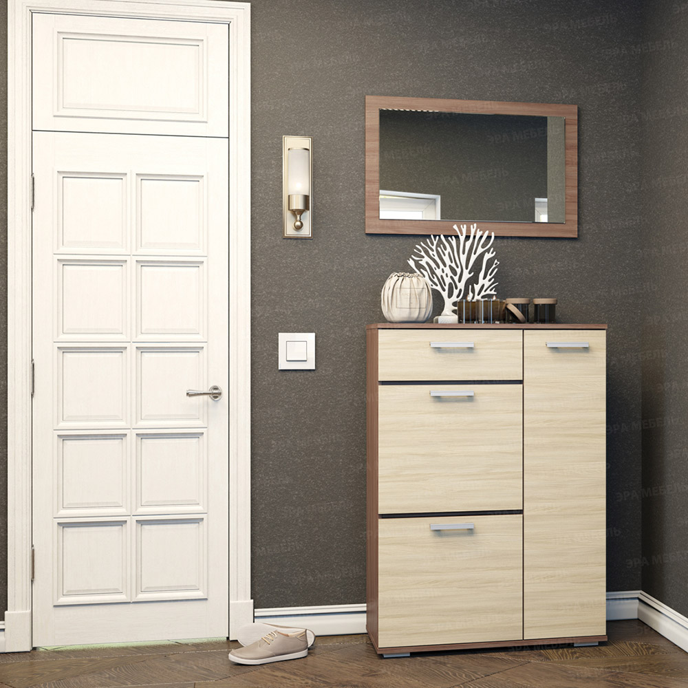 Широкая и вместительная Прихожая Ника 0,8 Венге-Лоредо позволит разместить в себе обувь всех членов семьи, а выдвижной ящик может служить местом для хранения аксессуаров, перчаток и шарфов. Дверки у остальных ящиков распашные.
