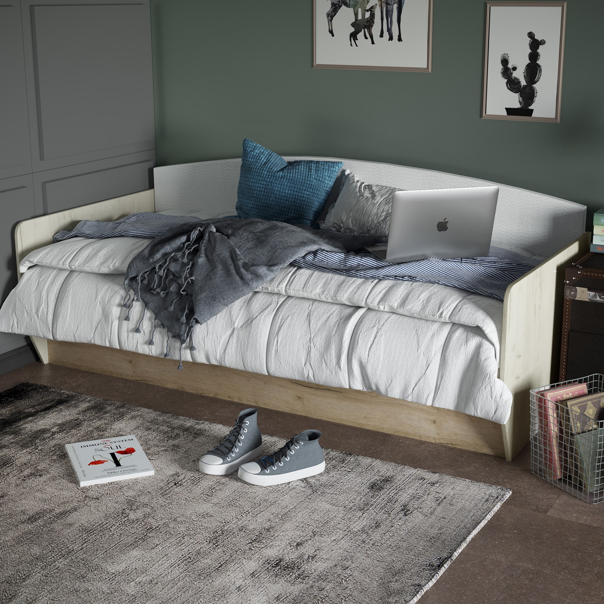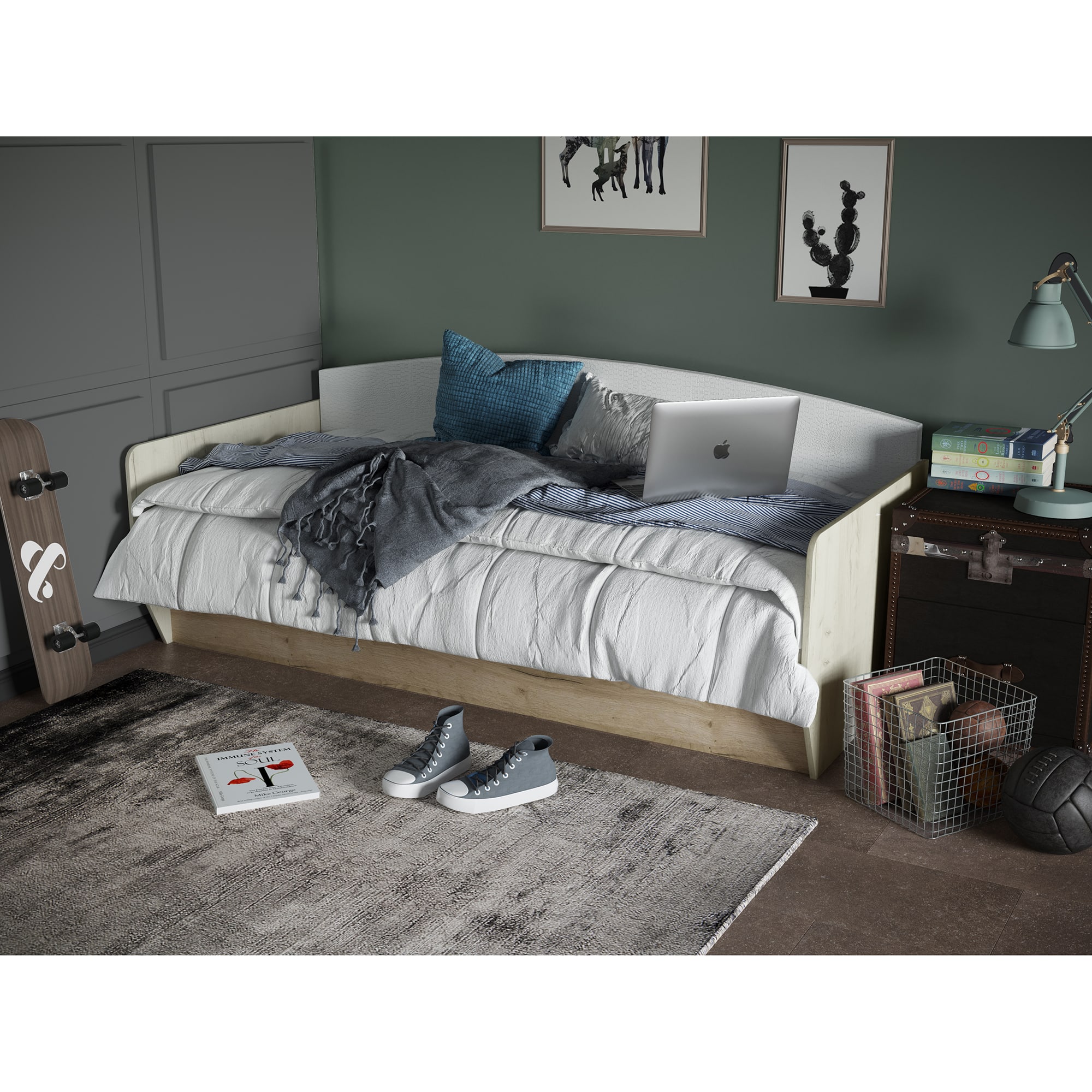 Просторное спальное место обеспечивает комфортный сон, а большой ящик в основании позволяет хранить постельные принадлежности. Благодаря своей универсальности, эта кровать идеально подходит для подростков, которые хотят иметь удобное место для сна и отдыха.