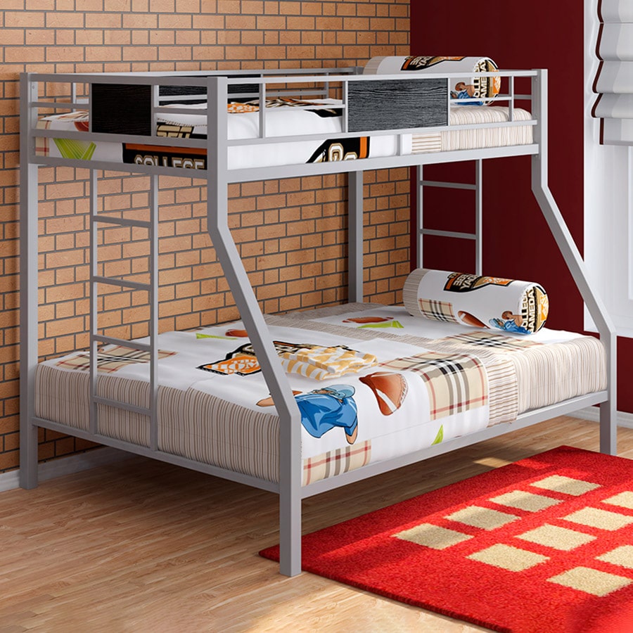 Металлическая двухъярусная кровать Гранада способна выдерживать нагрузку до 80 кг (на одно спальное место), что делает ее подходящей как для детей, так и для взрослых. Конструкция кровати предусматривает спальные места разных размеров. В отличие от кроватей из ЛДСП выглядит менее громоздкой. В комплект входят две лестницы по бокам кровати.