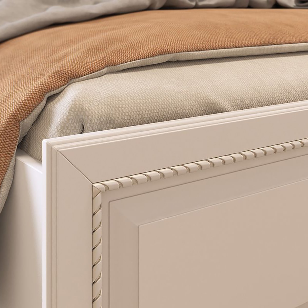 Кровать выполнена в актуальном цвете джелато, который располагает к спокойствию и уюту, а также оснащена основанием, которое обеспечит здоровый и крепкий сон. Спинки кровати украшены объемным декоративным элементом и фрезеровкой с патиной.