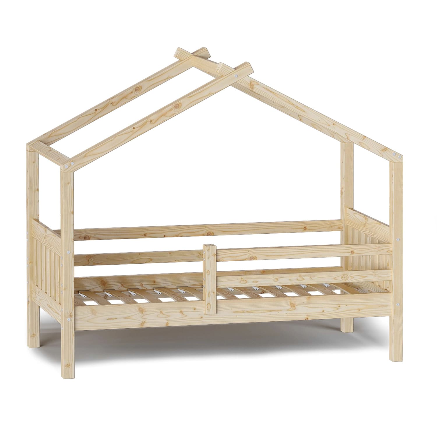 Каркас укомплектован основанием из поперечных гнутых ламелей. Головная и ножная спинки соединены стропилами, образующими крышу, благодаря чему малыш будет ощущать себя в собственном уютном домике. В комплектацию кровати входит ортопедическое основание из гнутоклееных ламелей.