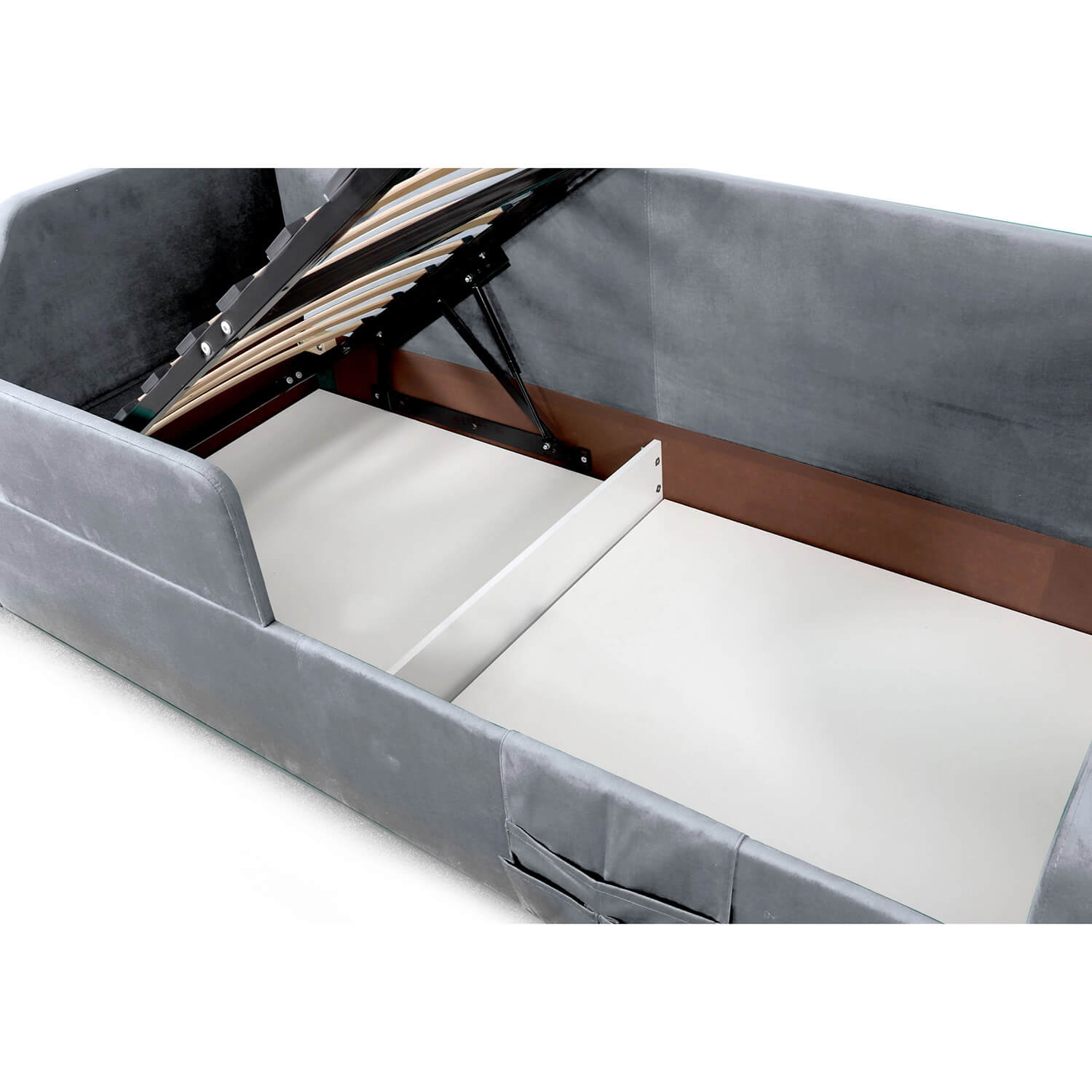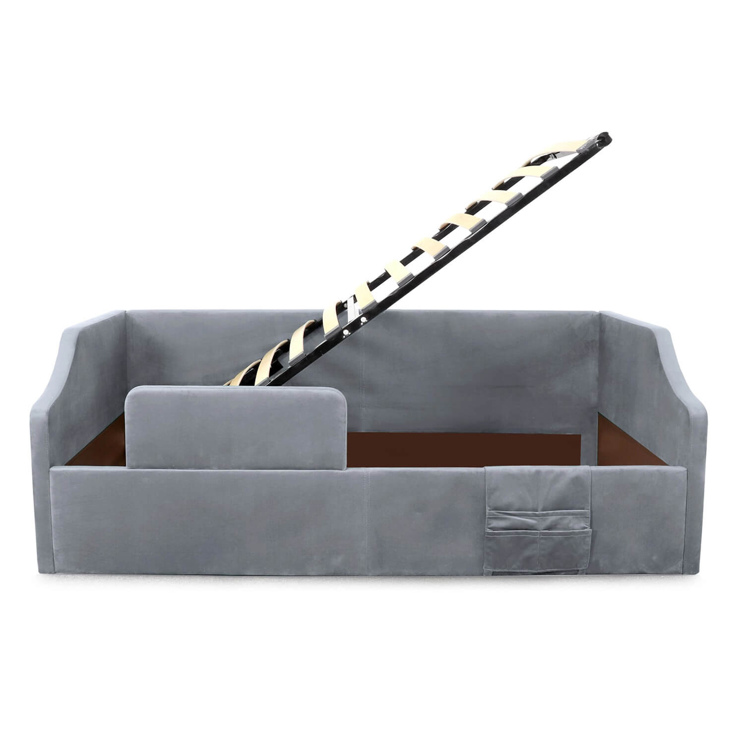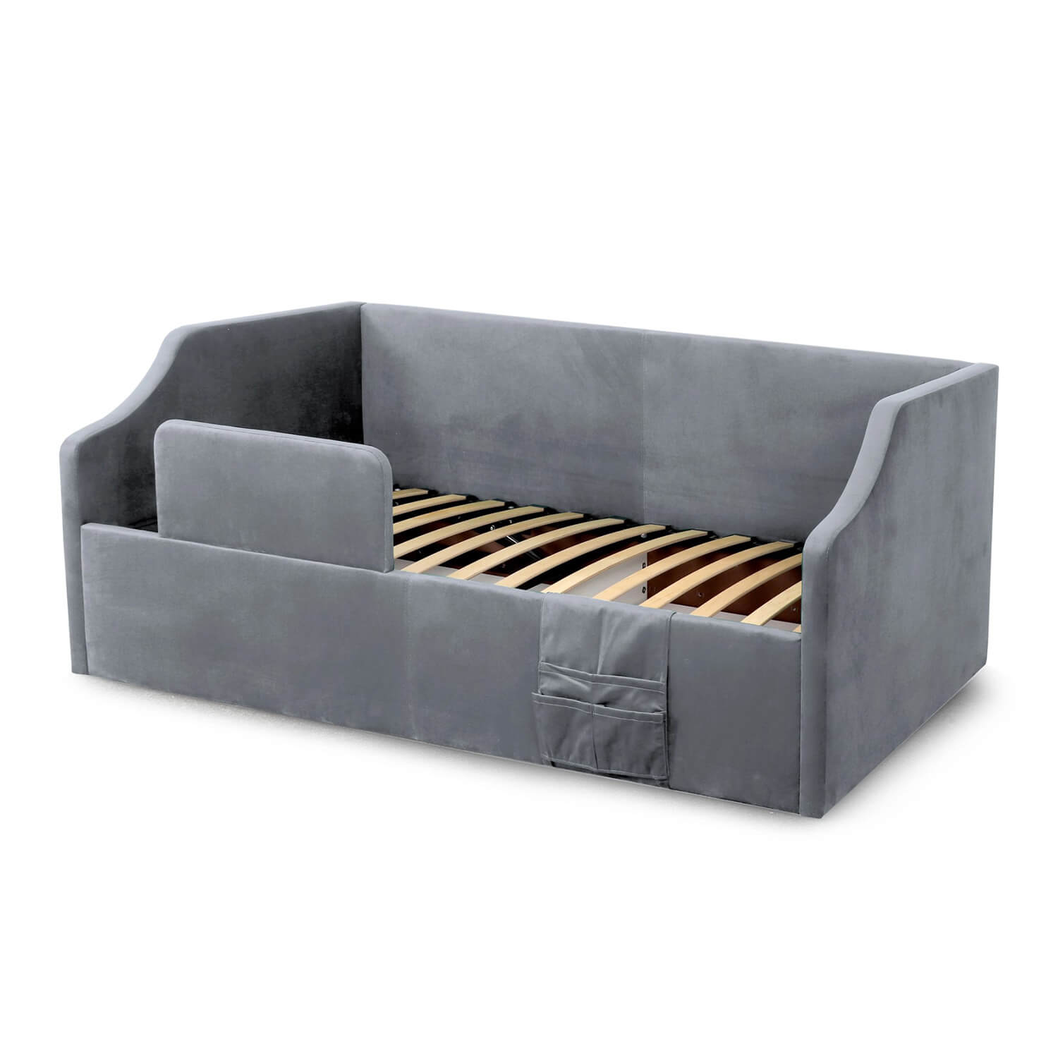 Кровать “Дрим” - это идеальное решение для детской комнаты. Мягкая обивка из приятного на ощупь, гипоаллергенного велюра обеспечивает комфорт и уют во время сна.