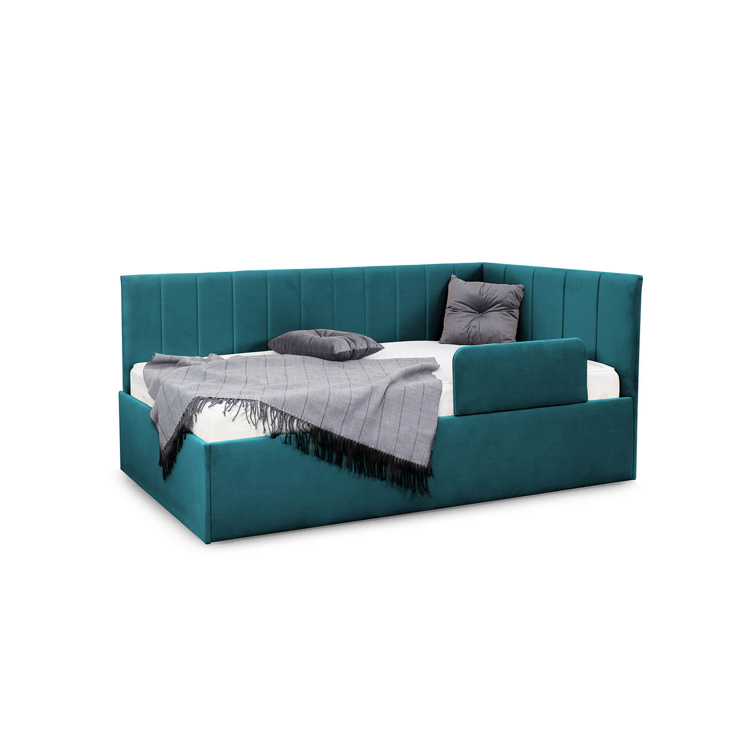 Кровать “Хеппи” - это идеальное решение для детской комнаты. Мягкая обивка из приятного на ощупь, гипоаллергенного велюра обеспечивает комфорт и уют во время сна.