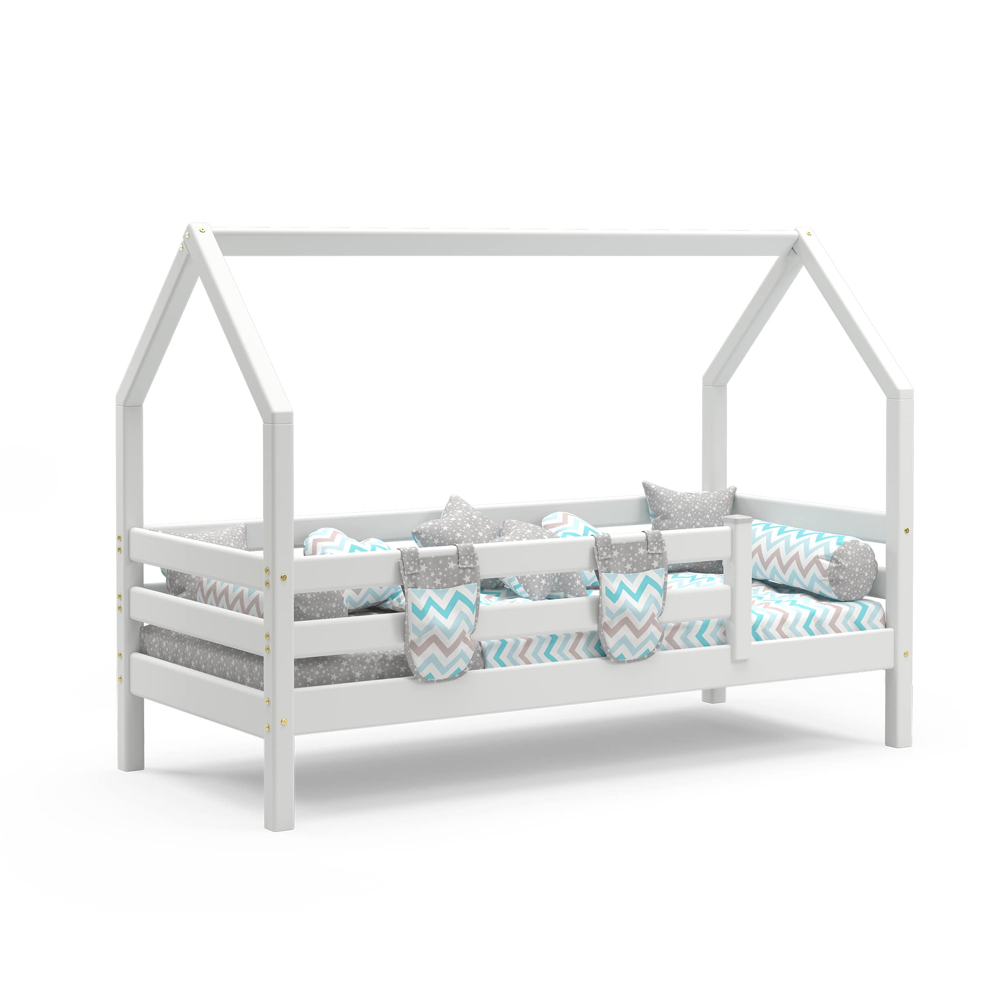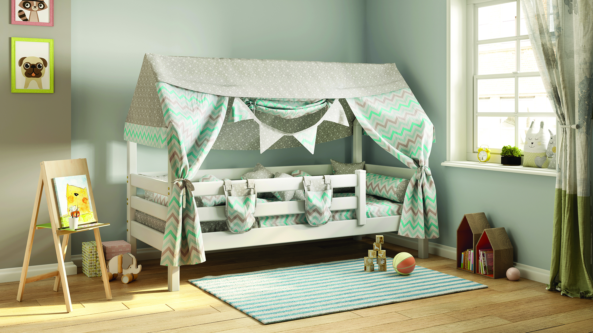 Уложить разыгравшегося ребенка бывает непросто – справиться с этой задачей поможет кроватка "Соня" с надстройкой в виде крыши домика. Дополненный текстильными элементами балдахин создает ощущение безопасности, настраивает на спокойствие, а в дневное время – может служить декорациями для пробуждающих воображение игр. Бортик по периметру защищает от случайного падения во сне. Собирается на обе стороны.
