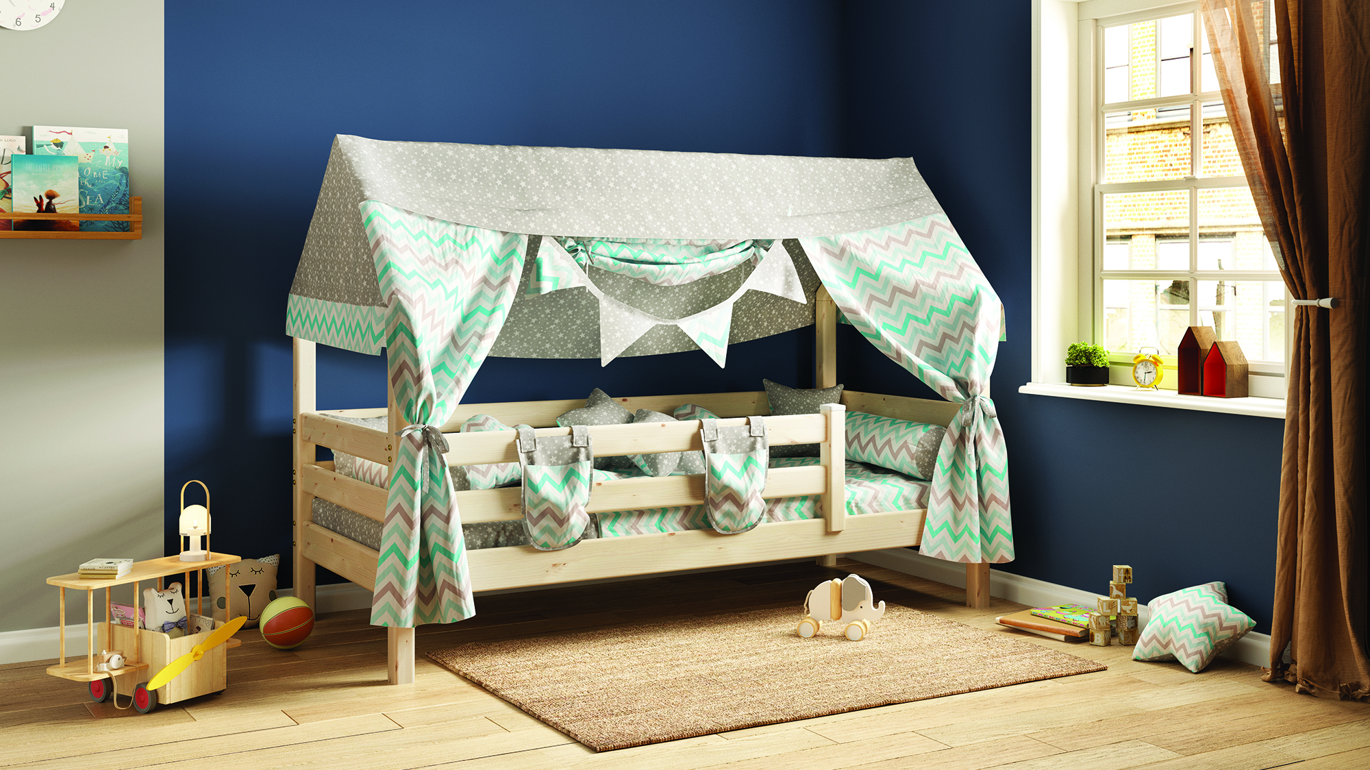 Уложить разыгравшегося ребенка бывает непросто – справиться с этой задачей поможет кроватка "Соня" с надстройкой в виде крыши домика. Дополненный текстильными элементами балдахин создает ощущение безопасности, настраивает на спокойствие, а в дневное время – может служить декорациями для пробуждающих воображение игр. Бортик по периметру защищает от случайного падения во сне. Собирается на обе стороны.