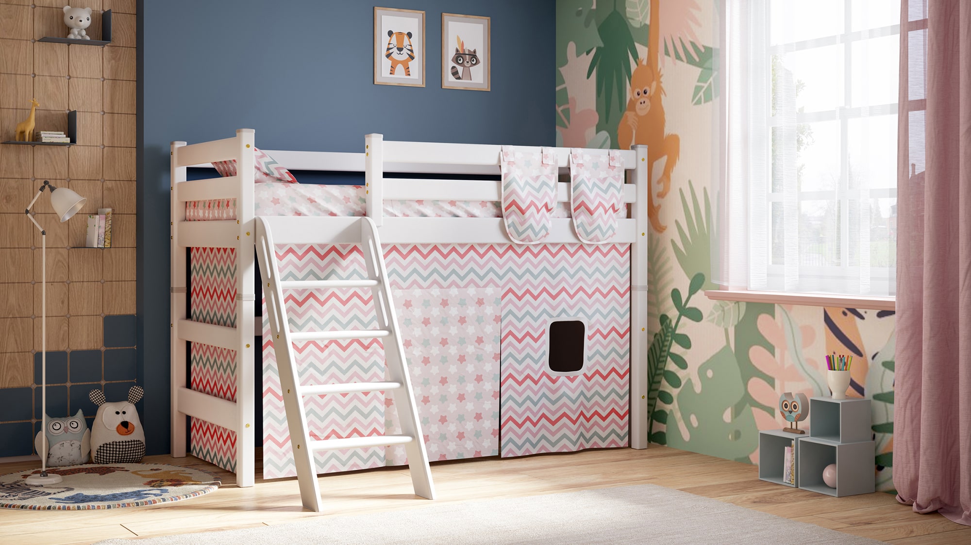 Вариант 6. Полувысокая кровать "Соня" с наклонной лестницей — один из примеров идеального сочетания практичности, оригинальности и долговечности. Цветовое исполнение подходит сразу для нескольких стилей, а габариты — для комнат разной площади. Мебель для детской создается из безопасных материалов с отличной износостойкостью.