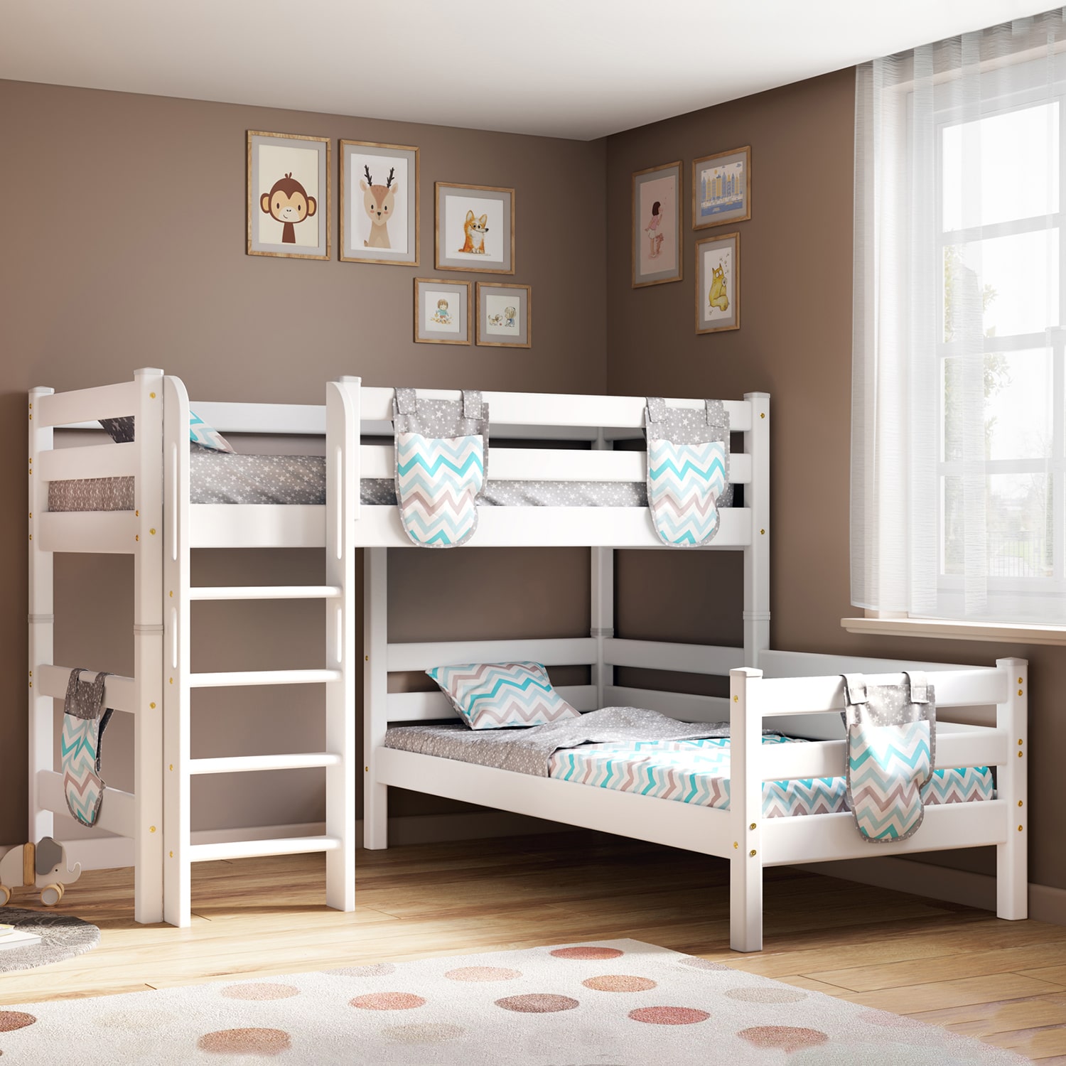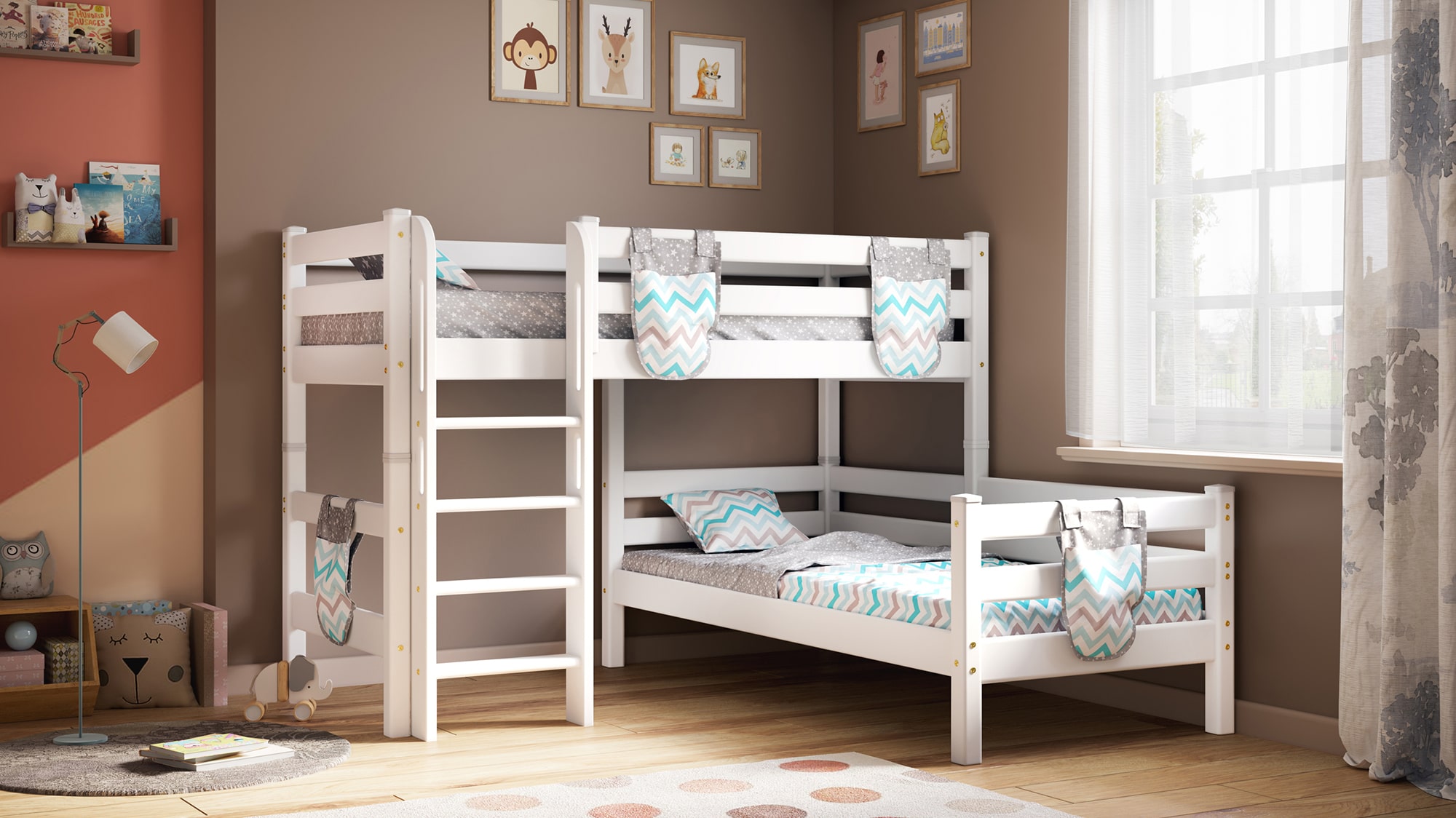 Вариант 7. Угловая кровать "Соня" с прямой лестницей — один из примеров идеального сочетания практичности, оригинальности и долговечности. Цветовое исполнение подходит сразу для нескольких стилей, а габариты — для комнат разной площади. Мебель для детской создается из безопасных материалов с отличной износостойкостью.
