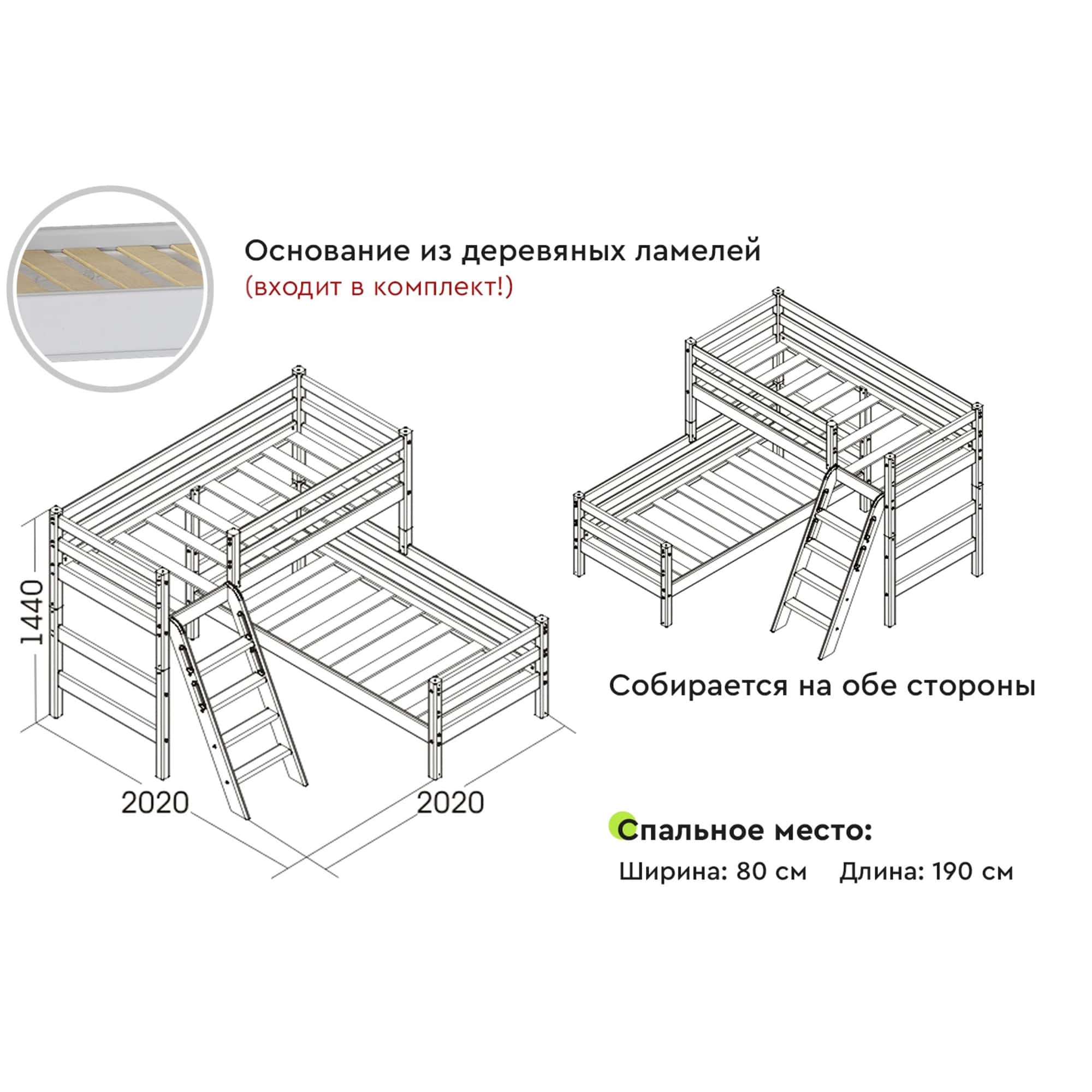 Вариант 8. Угловая кровать "Соня" с наклонной лестницей — один из примеров идеального сочетания практичности, оригинальности и долговечности. Цветовое исполнение подходит сразу для нескольких стилей, а габариты — для комнат разной площади. Мебель для детской создается из безопасных материалов с отличной износостойкостью.