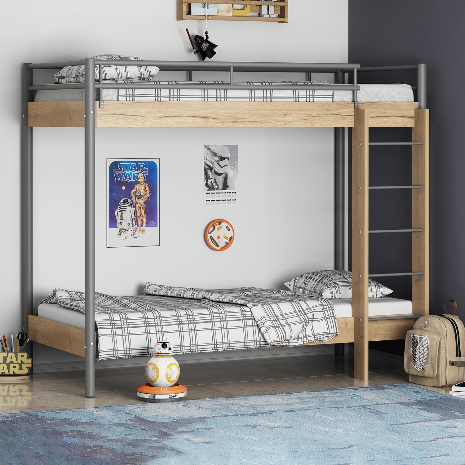 Основание под матрас: ортопедическая решетка. Краска: полимерная порошковая. Размер спального места: верхнее 90х200 см, нижнее 90х200 см