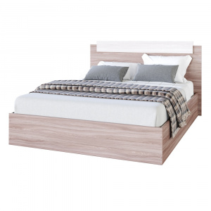 Кровать изготовлена из качественного ЛДСП, который обеспечивает прочность и долговечность конструкции. Материал каркаса обладает гладкой поверхностью, что придает изделию элегантный и современный вид.