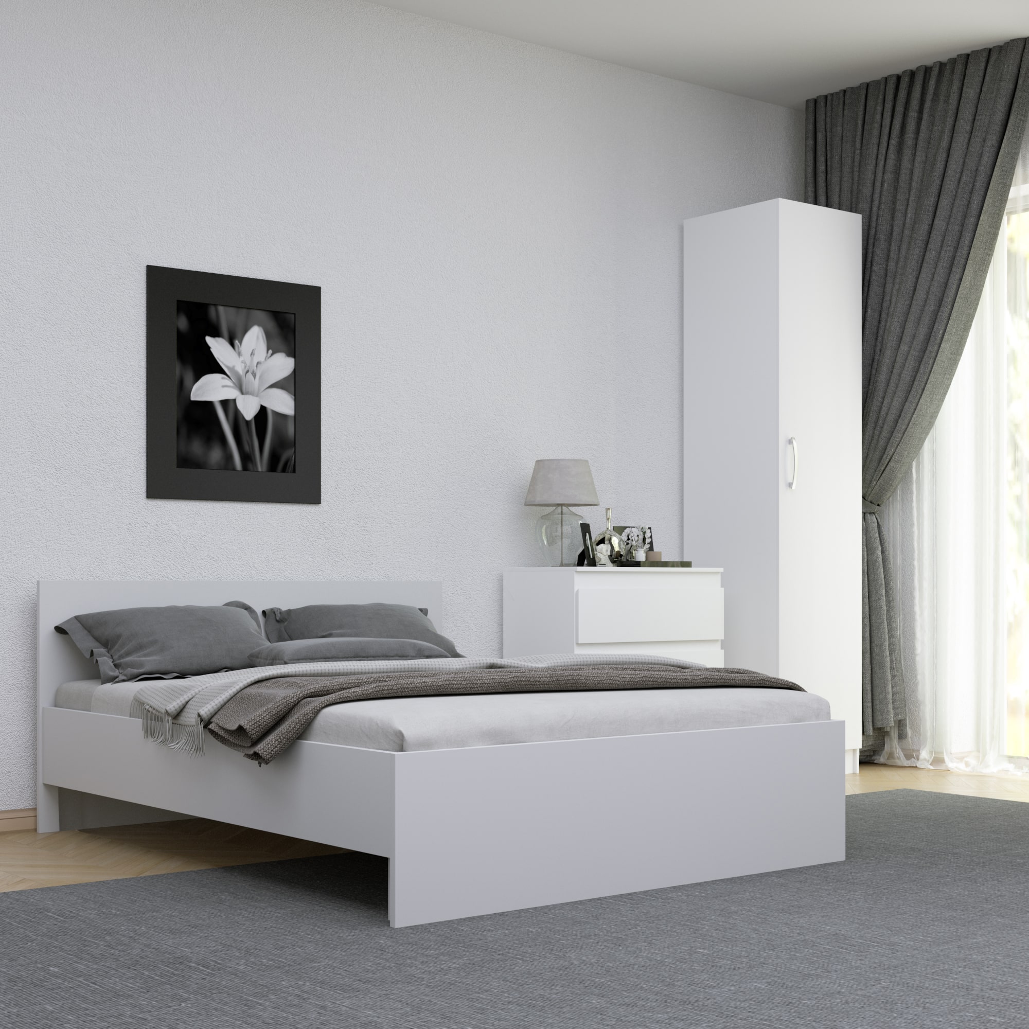 В комплектацию кровати входит каркас и реечное основание, что позволяет легко и быстро установить матрас. Максимальная нагрузка на кровать составляет 100 кг, что делает ее подходящей для людей разного телосложения.