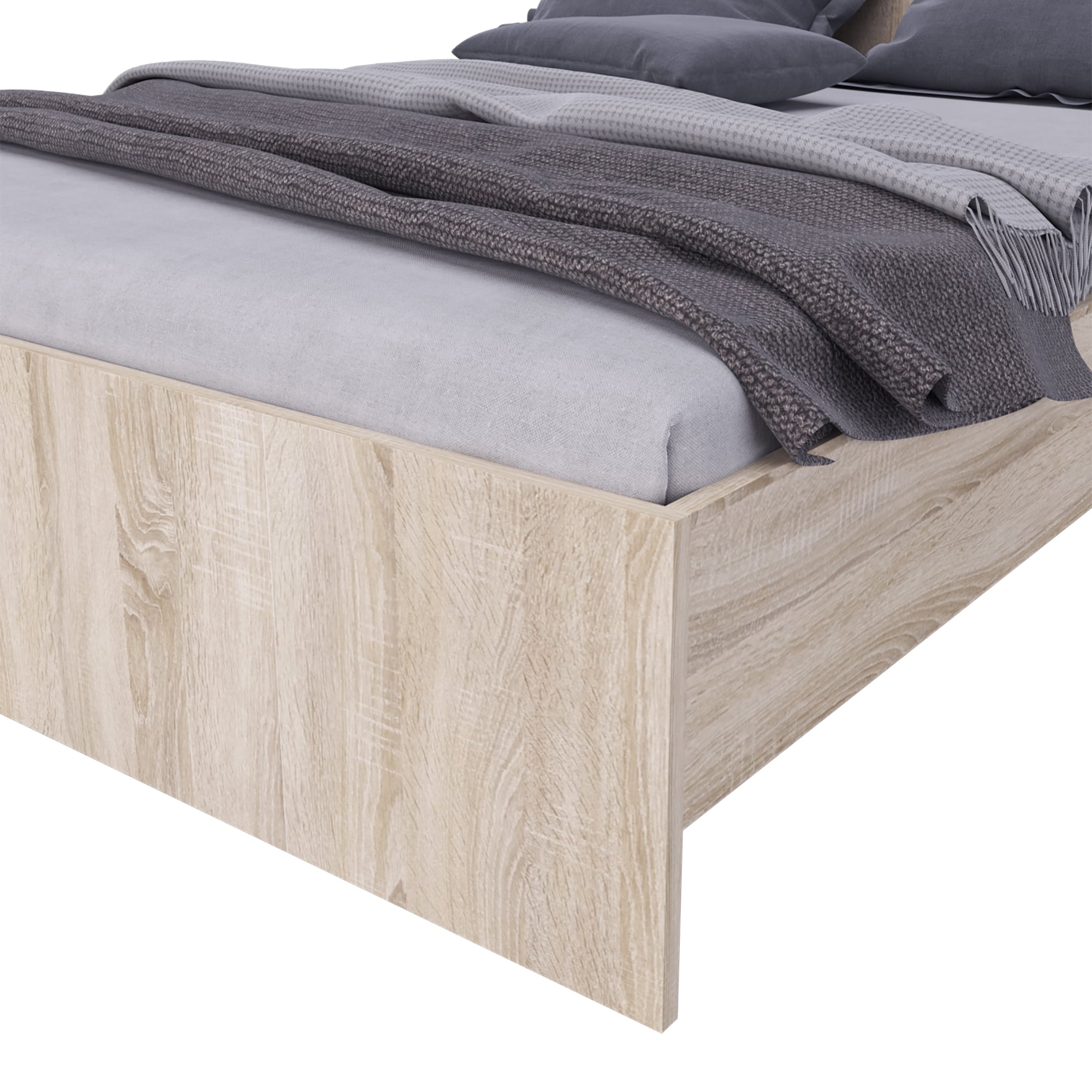 Кровать выполнена из качественного ЛДСП толщиной 22 мм, что обеспечивает прочность и долговечность конструкции. Бежевый цвет дуба сонома придает кровати изысканный и уютный вид.