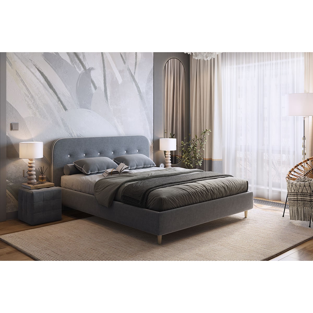 Эта кровать, выполненная с учетом всех современных требований к комфорту и качеству, станет незаменимым предметом интерьера в вашей спальне. Выберите стиль и удобство с мягкой кроватью Лео.