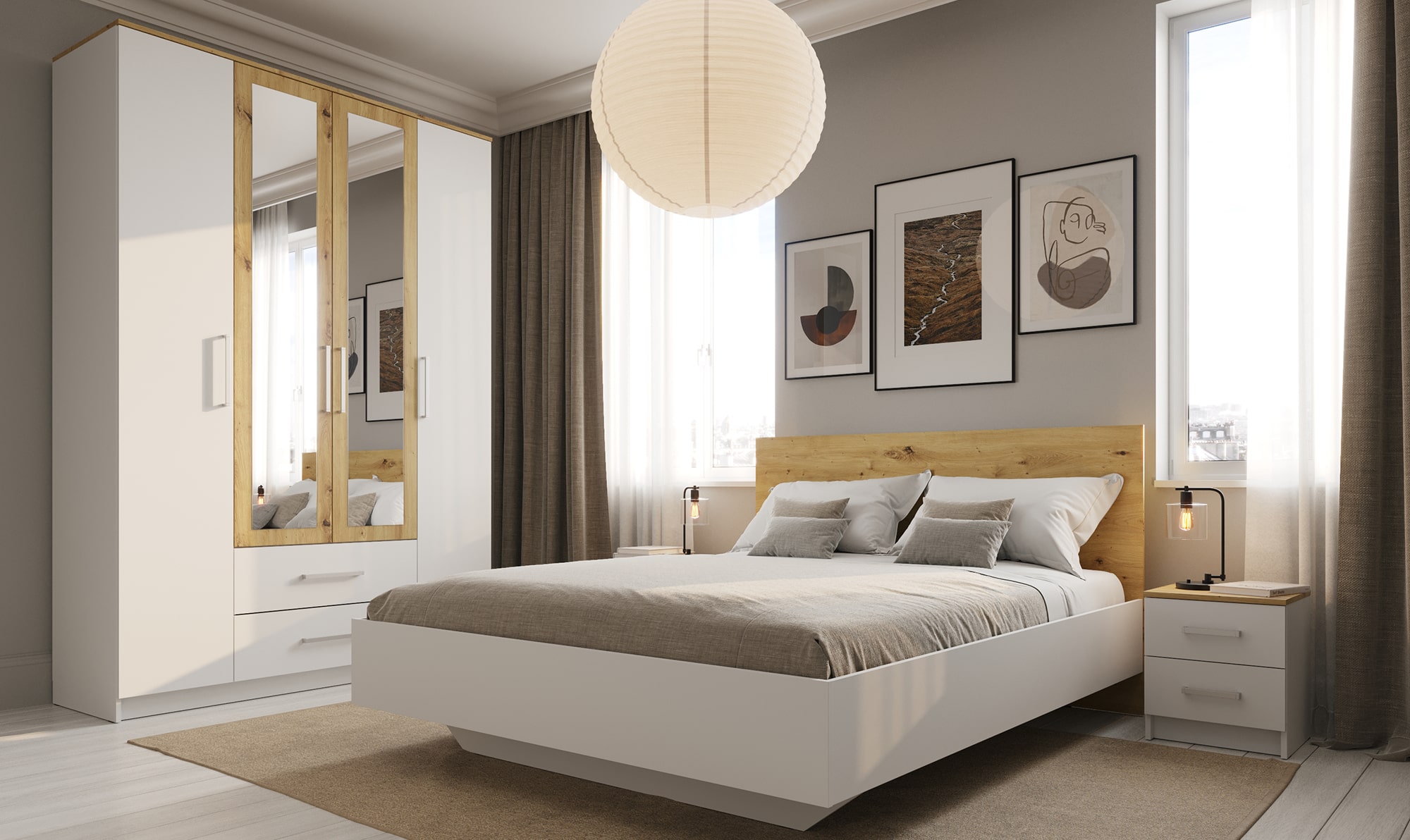 Кровать НК Бланка 1600 Белый/дуб Артизан с эффектом парящей кровати. - это воплощение современного комфорта и элегантности в вашей спальне. Элегантное сочетание белоснежного корпуса с теплым оттенком натурального дуба Артизан создает изысканный контраст, который гармонично впишется как в классический, так и в современный интерьер.