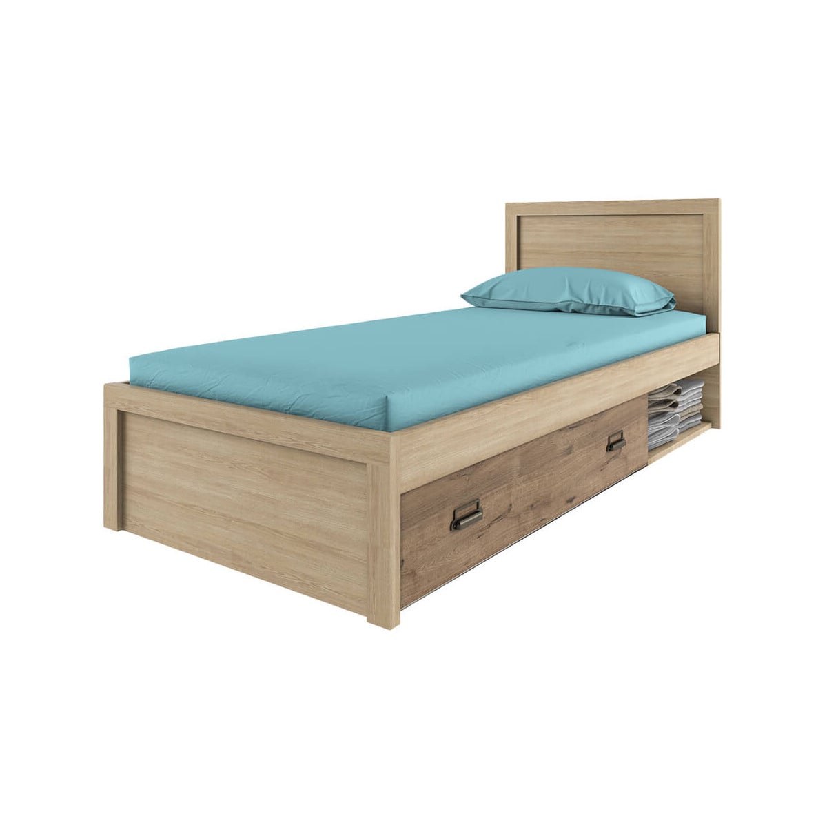Кровать 90 не только организует зону сна и отдыха, но и задействует пространство, которое образуется под спальным местом. Функционал кровати 90 расширен за счёт наличия вместительного ящика для хранения постельного белья, покрывал и других вещей. Кровать 90 DIESEL – односпальная, размер спального места – 900*2000 мм. Конструкция кровати представляет собой сплошное изголовье прямоугольной формы, изножье прямоугольной формы, а также вместительный выдвижной ящик, открытую нишу.