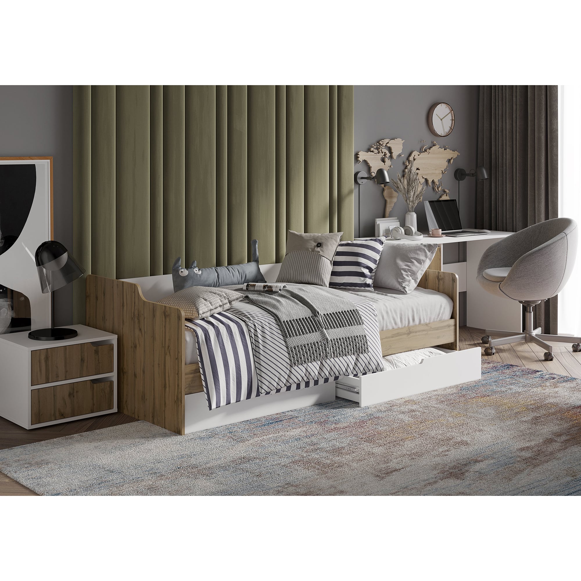 Кровать односпальная Харви 2Я Белый/Дуб вотан