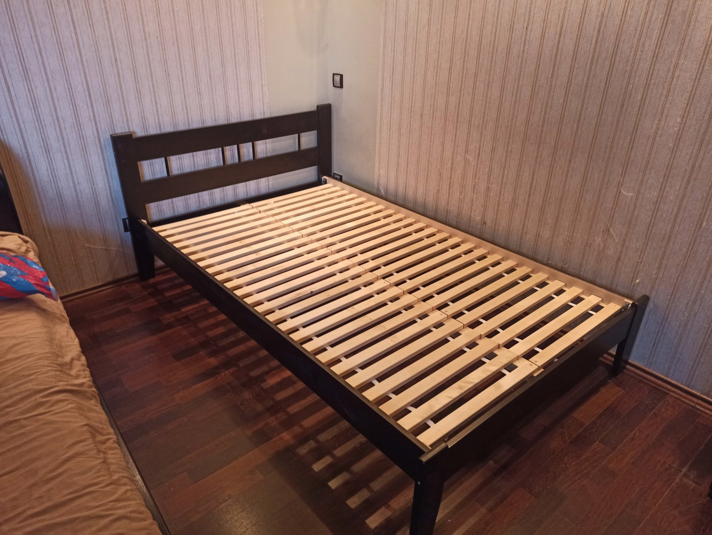 В комплектацию кровати входит каркас и реечное основание (брус).